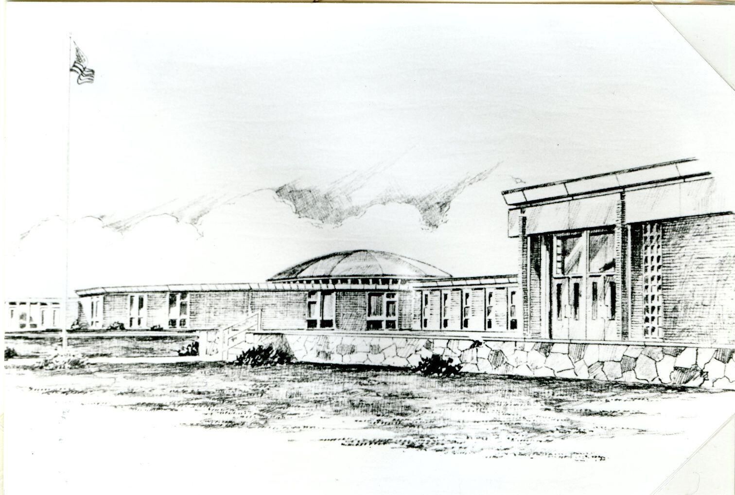 St. Johns High School. Copy of drawing used in Clinton County History (1980) page 663.