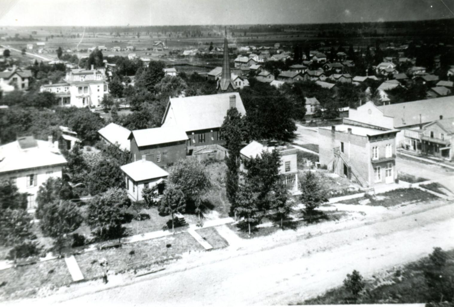 Looking west from courthouse this is the corner of M-21 and Maple Street.