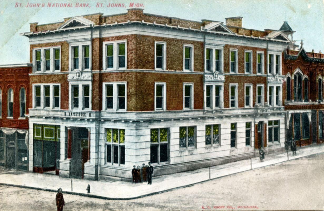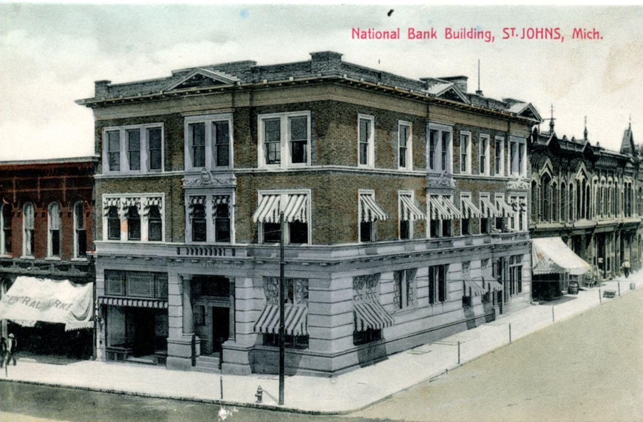 Postcards of St. Johns National Bank.