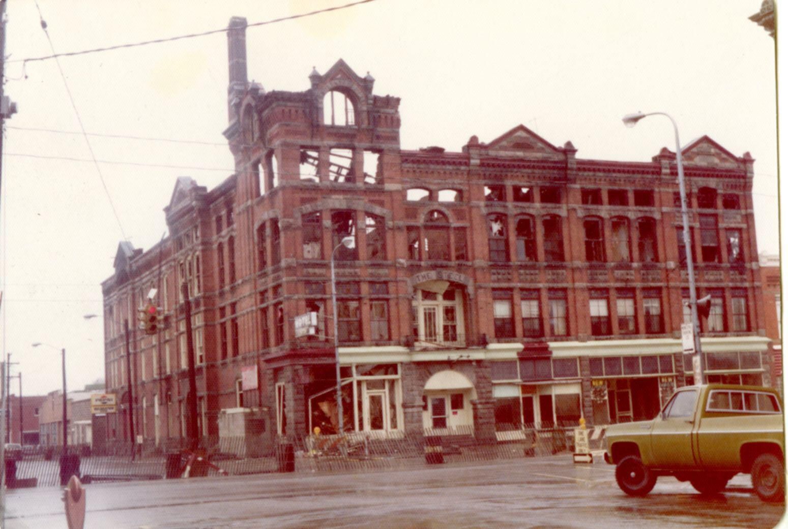 Steel Hotel, St. Johns, after 1975 fire.