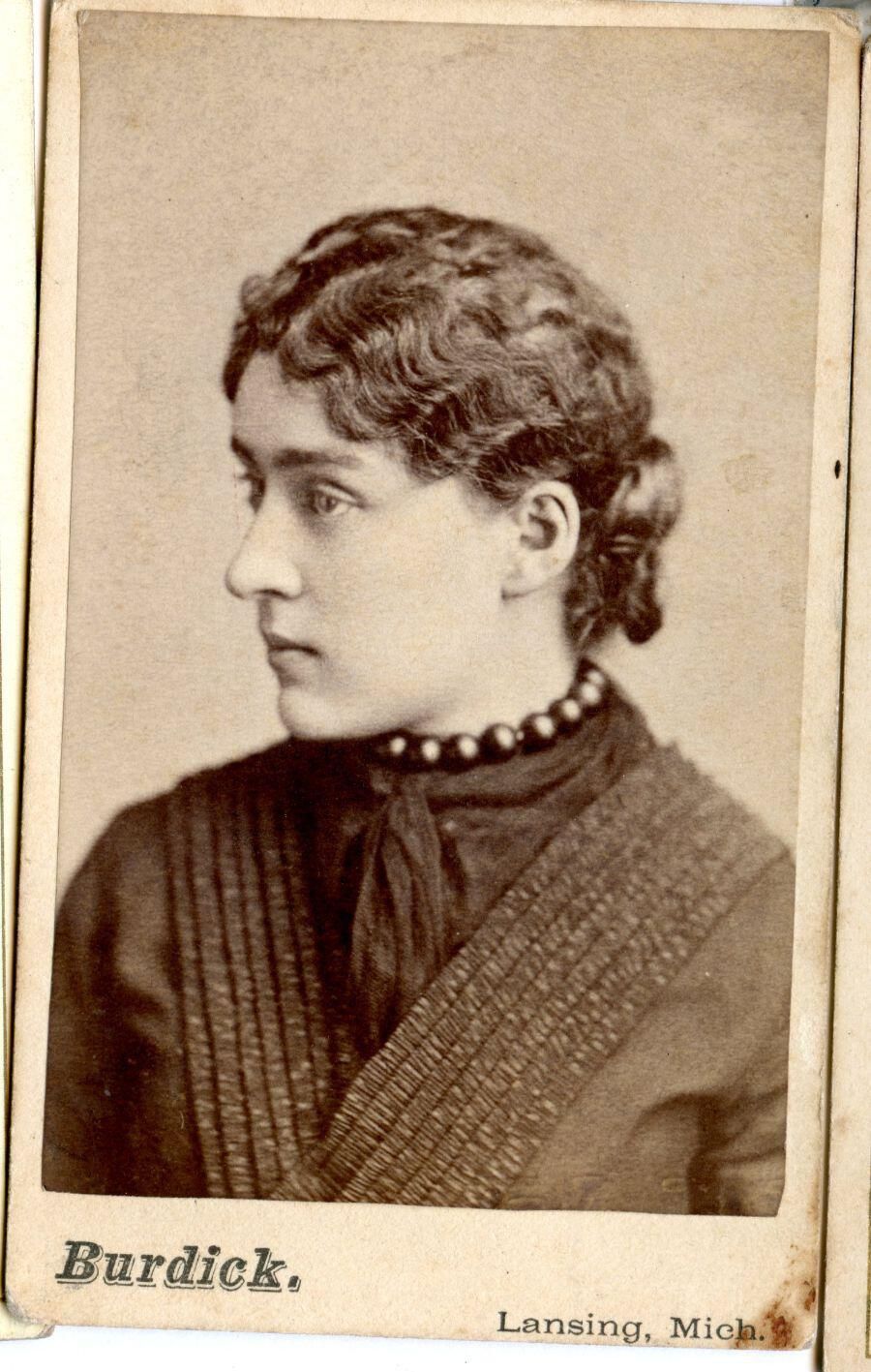 Harriet E. "Hattie" Strickland. Daughter of Randolph and Mary Ellen (Gooch) Strickland. Wife of John E. Allaben. (Q-27 is a copy of T-43)