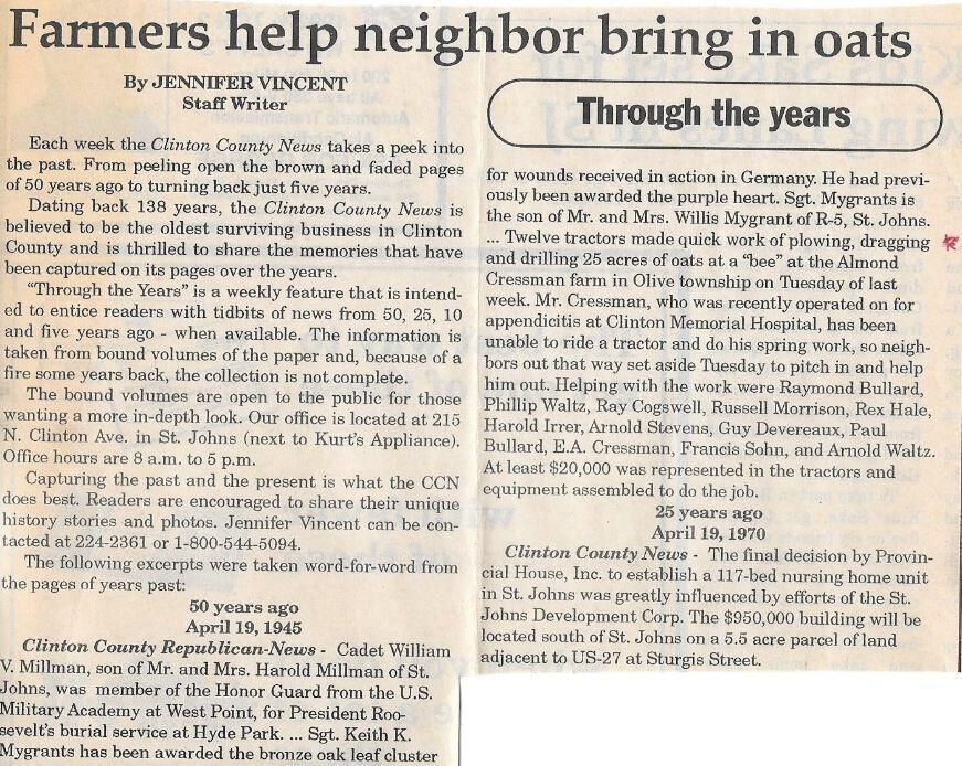 Farm tractors, 1945. Almond Cressman farm. See newspaper article.
