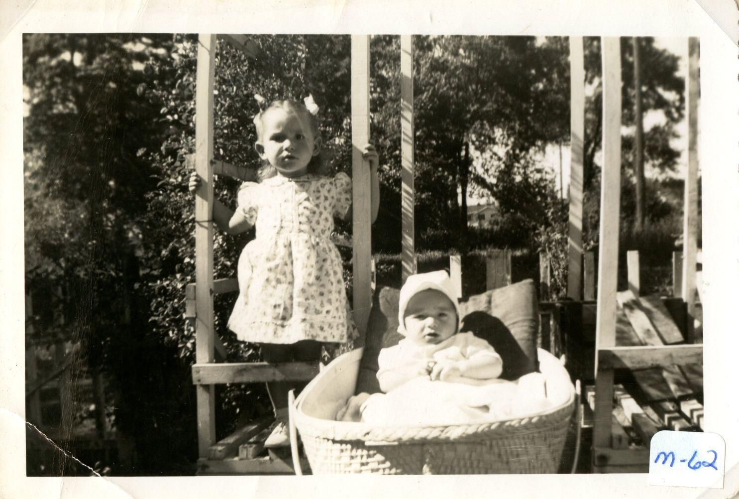 Judy (age 3) and Sydney Truxton (age 5 months), children of Syndey and Ruby (Fair) Truxton. Taken in 1946.
