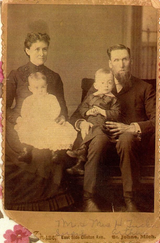 Horace and Mary Louise (Estes) Tucker and children Susie Delilah and Arthur Charles. Taken c1889. Estes family history.