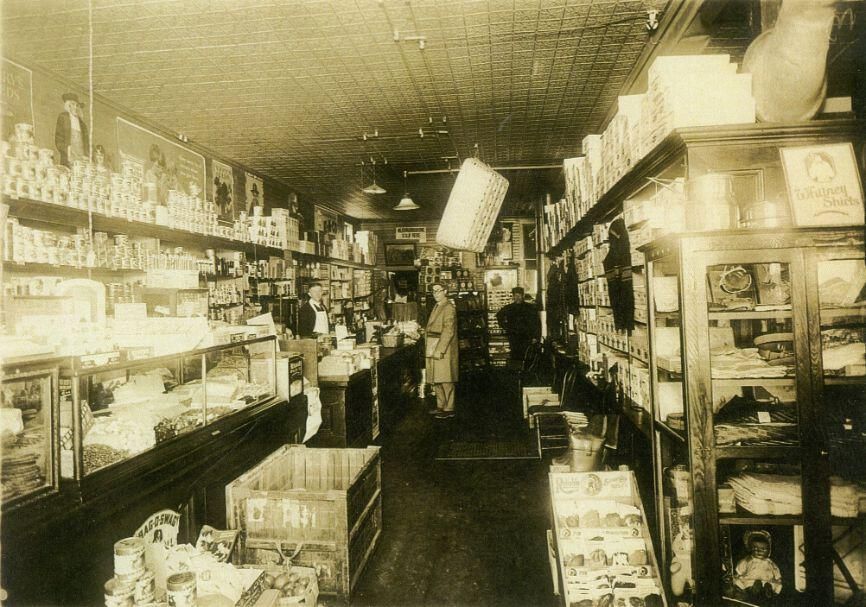 Tucker's Store - Fred and Earl Tucker and Harry Hefty the O. P. DeWitt grocery salesman (photocopy of original)Acquisition
