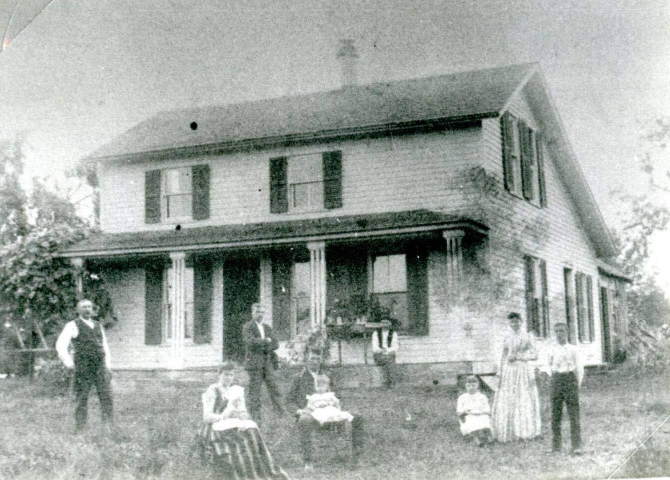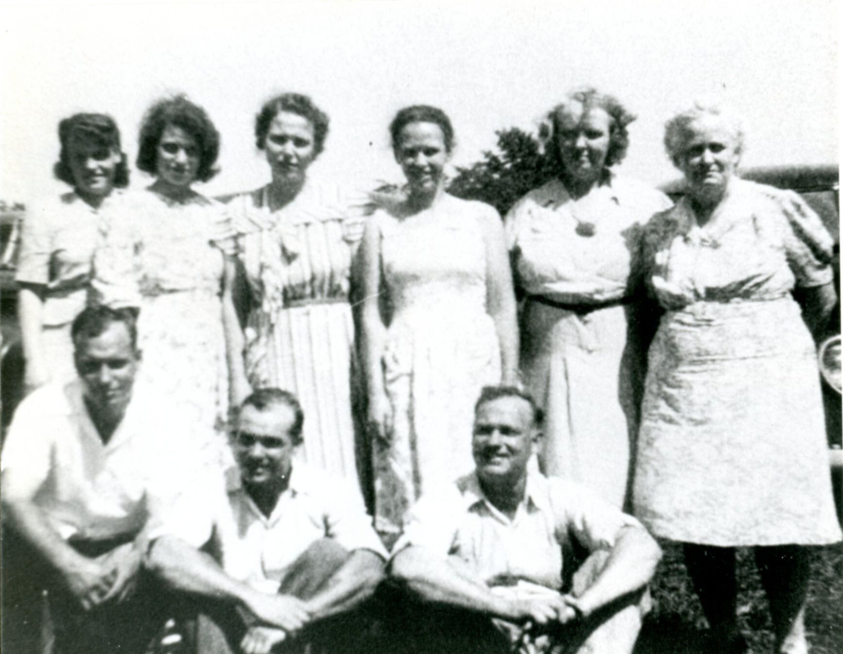 Underwood family. PI108-117 Gustavus, Abe, Charles (on porch), Linna, Arnold Payne holding Pansy, Lynn. (far right) Maude and Harle Payne and child. PI108-118 Charlie and Edith Underwood. PI108-119 (back) Lorraine Wright, Maple Upton, Leda Husted, Theda Hull, Reba Craig, Edith Underwood, (front) Robert, Oak, Acil Underwood. From 1980 History of Clinton County pages 306-307..