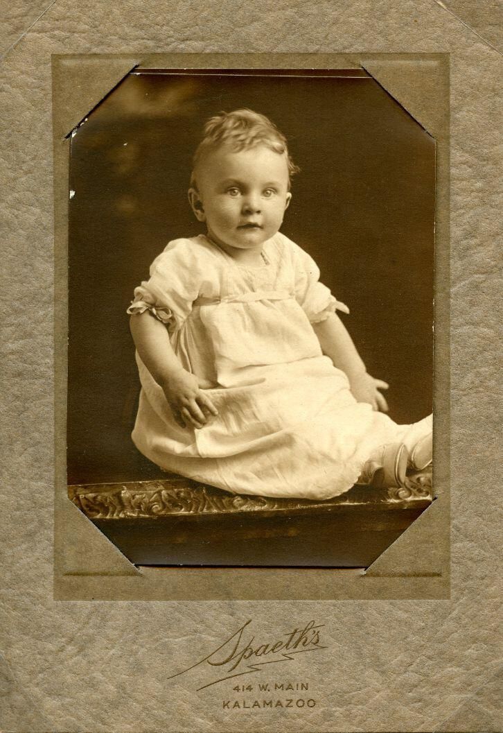 Unidentified. Possibly a child of Mabel (Barber) Williams. Photo by Spaeth's of Kalamazoo.