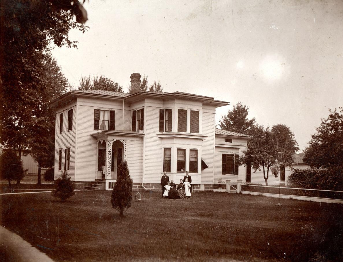 Unidentified home with family in front.