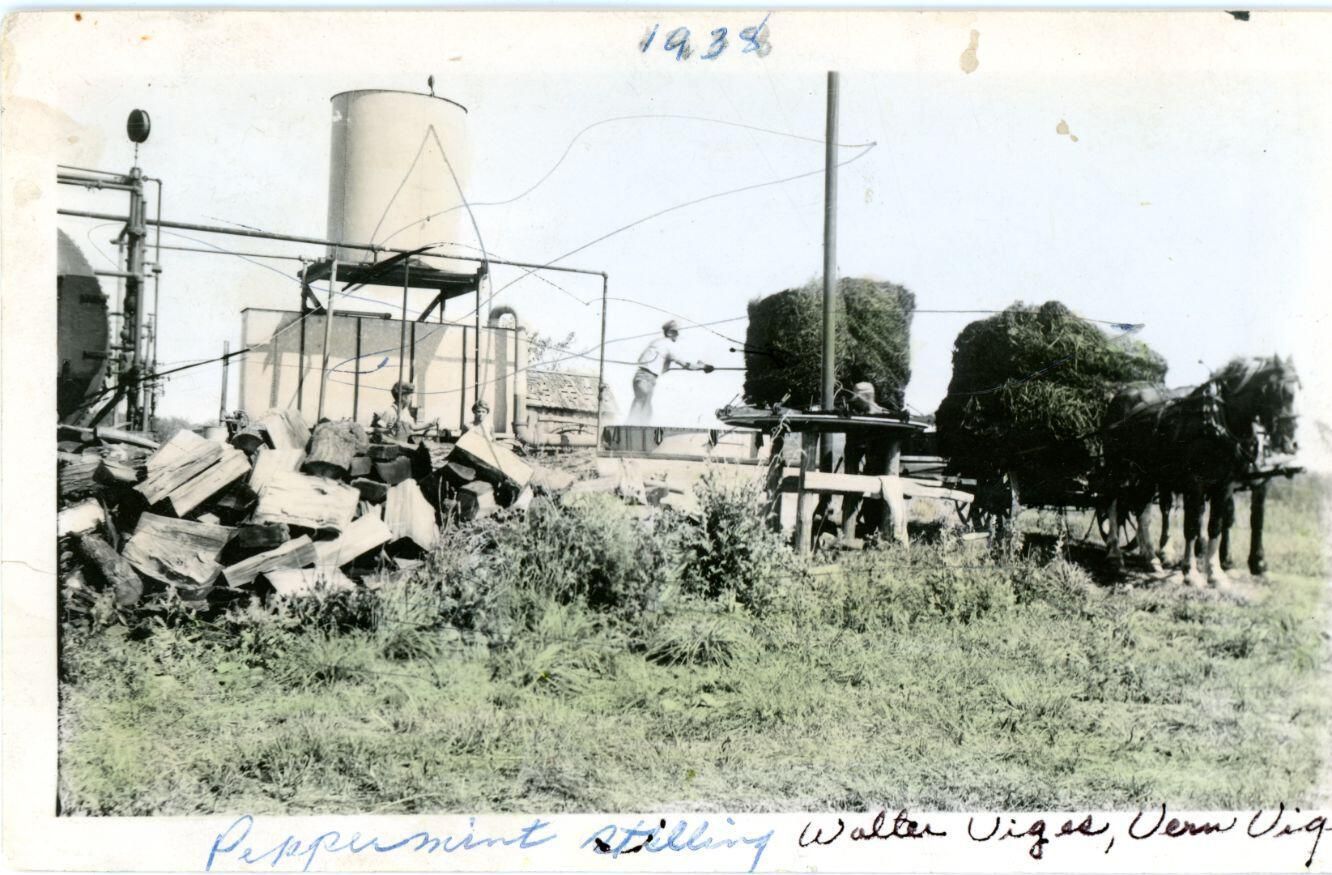 Waunita and Walter Viges and Mike Glowacki at the peppermint still.