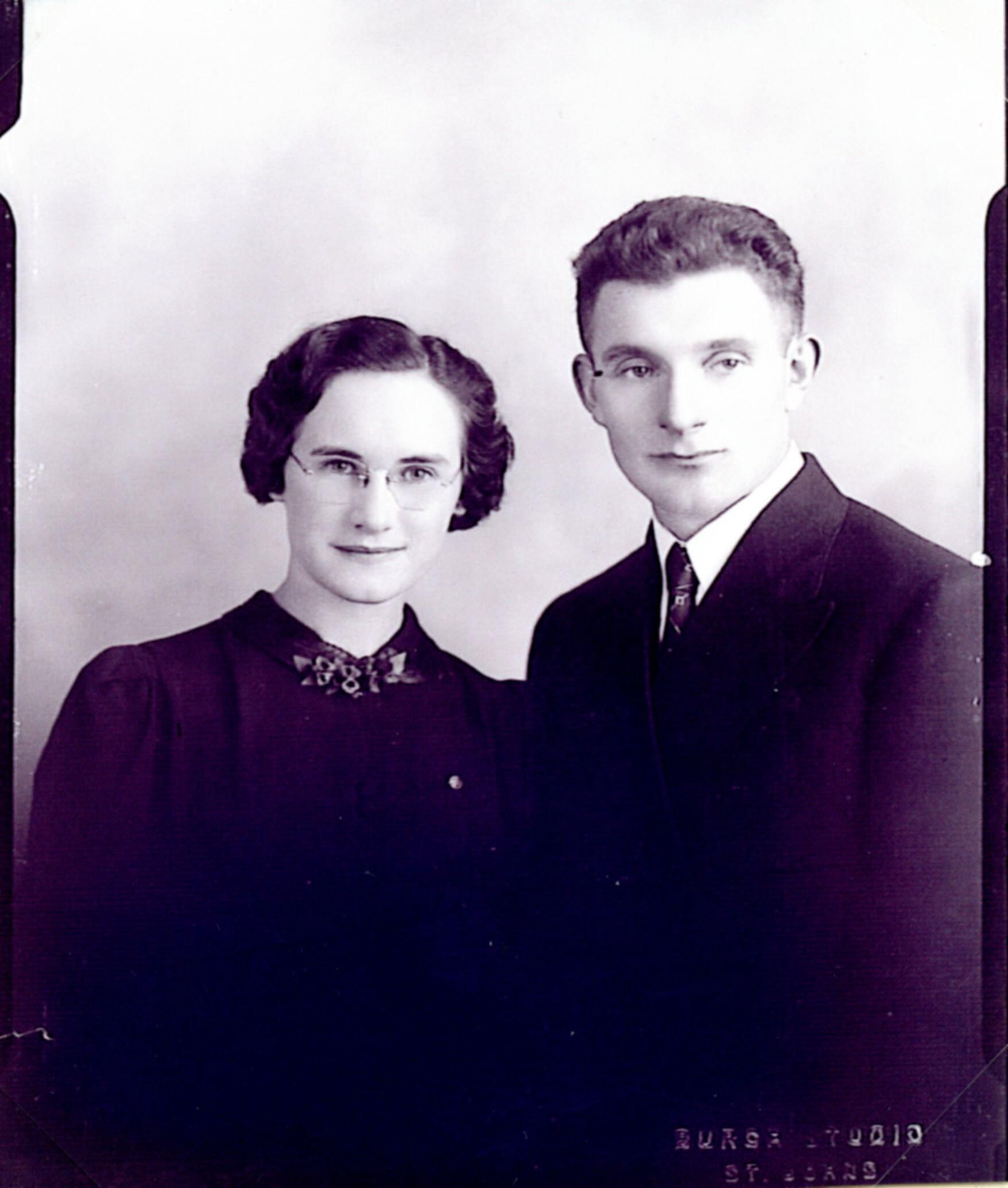 Cleo (Bissell) and Phil Waigle wedding photo from 1937. photocopy.