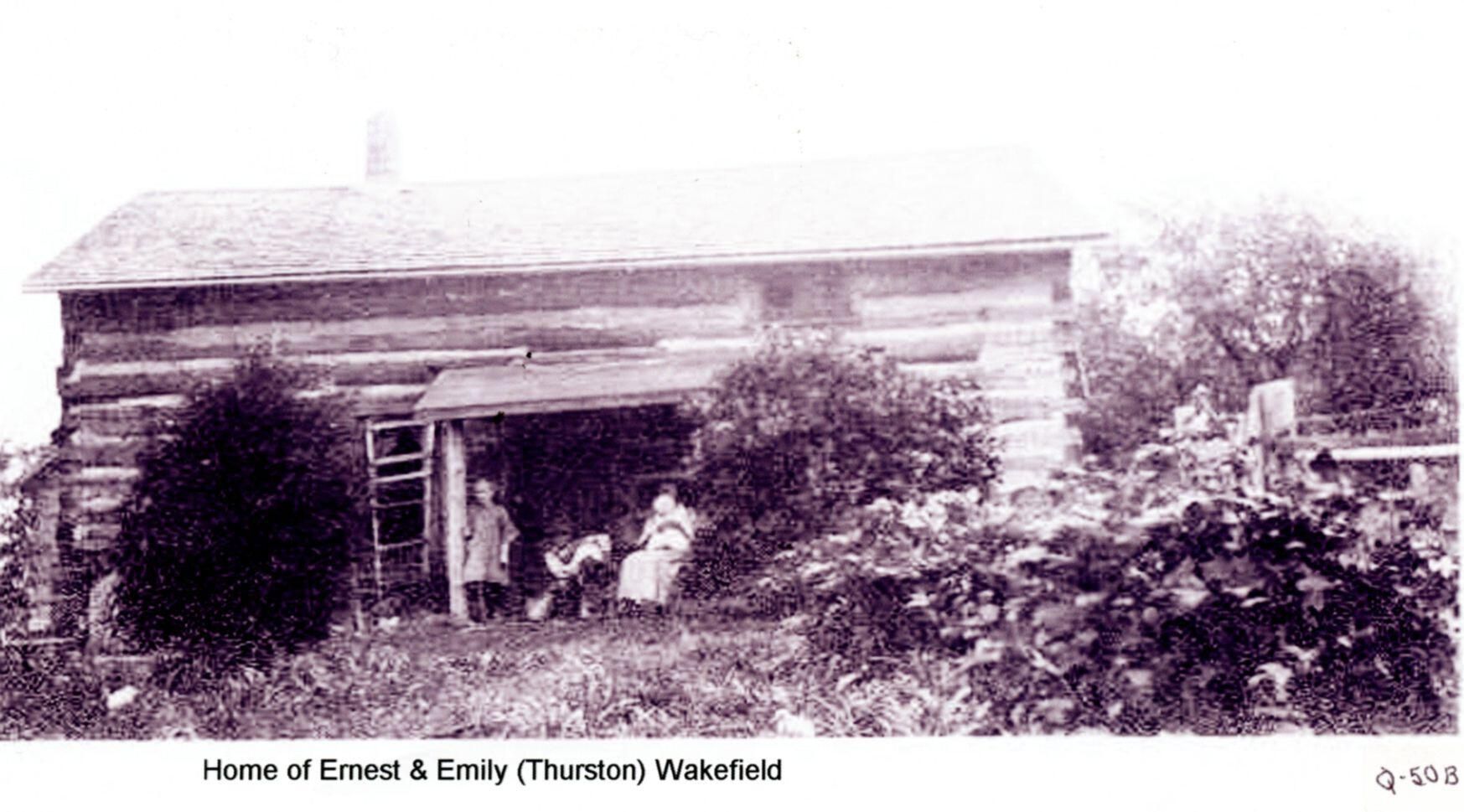 Log home of Ernest and Emily (Thurston) Wakefield, Essex Township. They lived here c1902-1918. photocopies