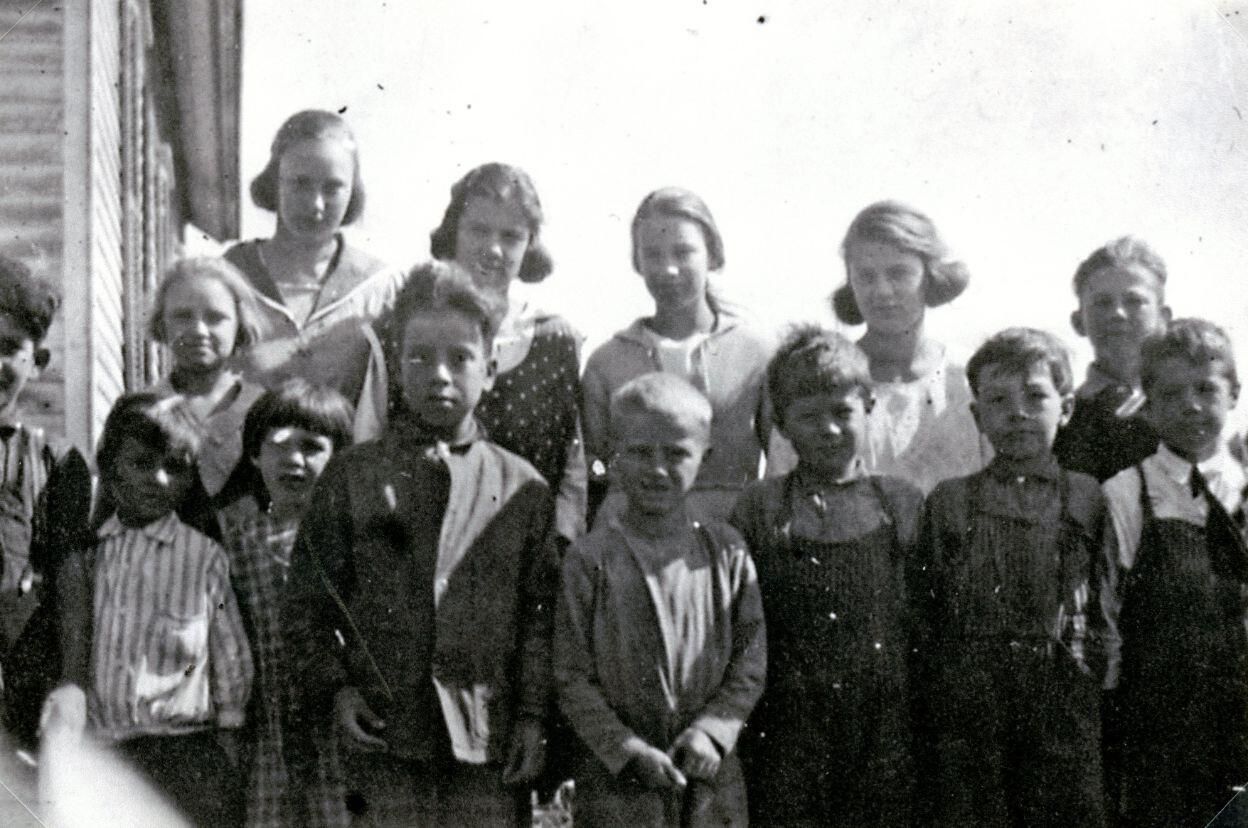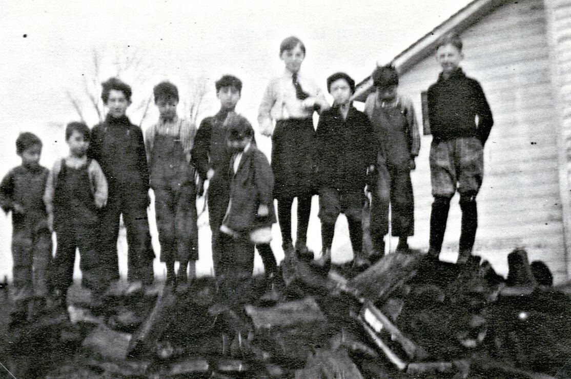 Watson school, Duplain Township. Q74 shows Lloyd Walker (died March 3, 1922, age 9) and Glenn Walker. Q75 shows Lloyd and Glenn Walker and possibly Earl Walker.