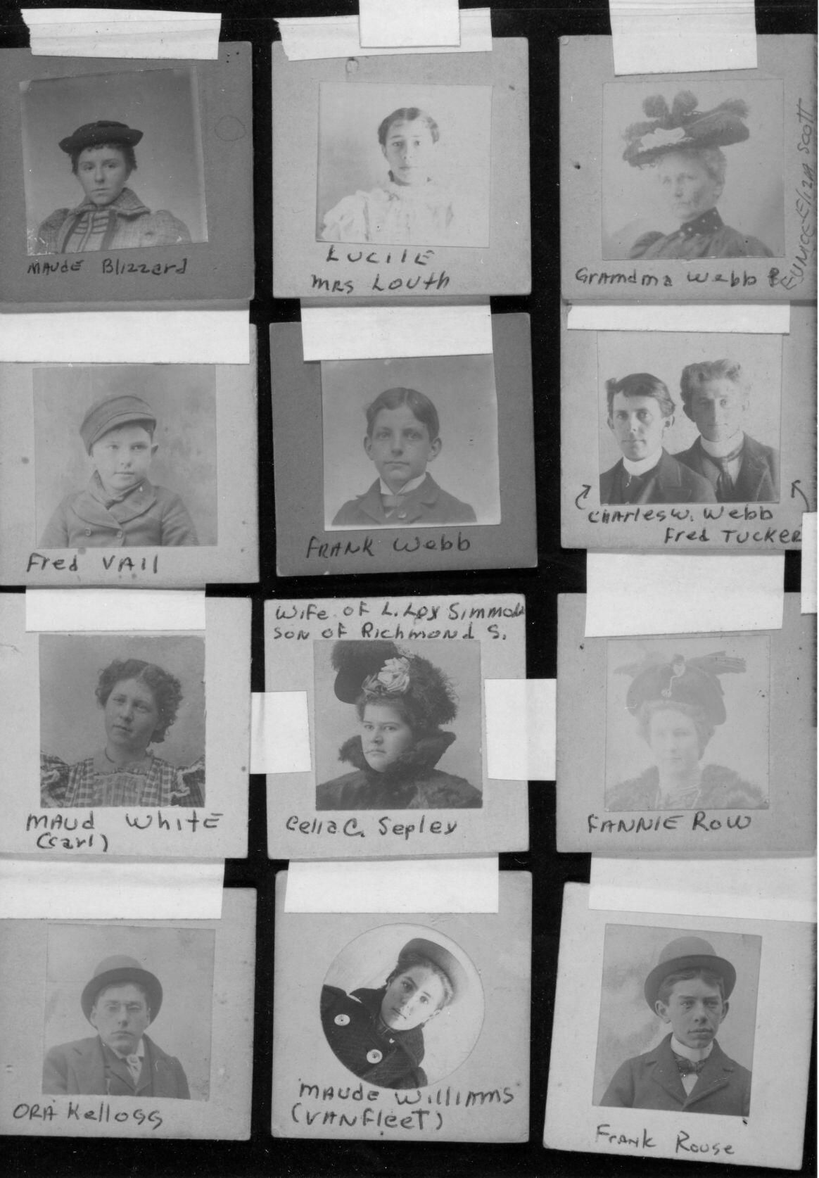 Maude Blizzard, Lucile McLouth, Eunice Eliza (Scott) Webb, Fred Vail, Frank Webb, Charles W. Webb, Fred Tucker, Maud White, Celia C. Sepley, Fannie Row, Ora Kellogg, Maude (VanFleet) Williams, Frank RouseAcquisition
