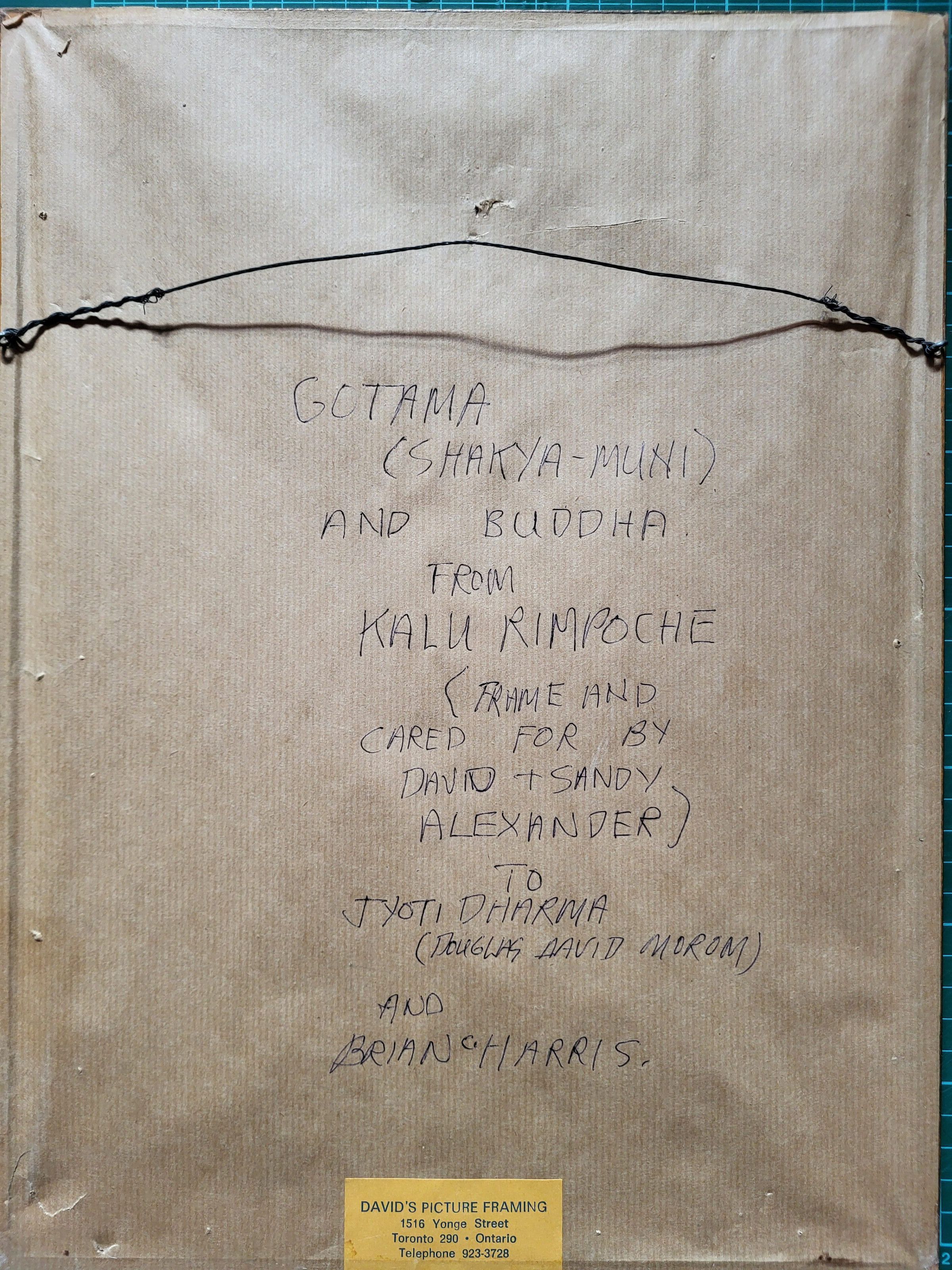 Gotama (Shakya-Muni) Buddha from Kalu Rimpoche (framed and cared for by David and Sandy Alexander) to Jyoti Dharma (Douglas David Morom) and Brian Harris.Collection