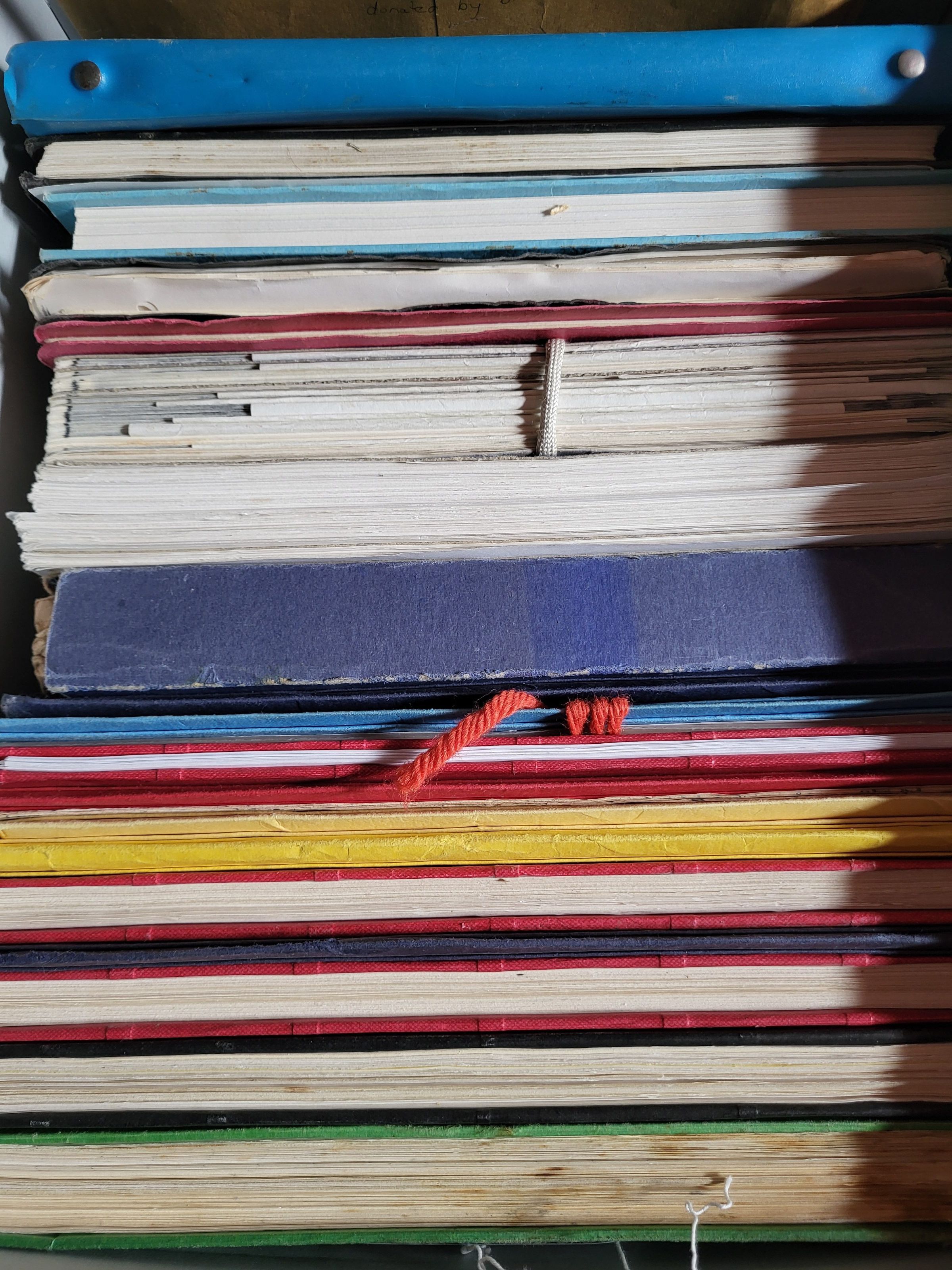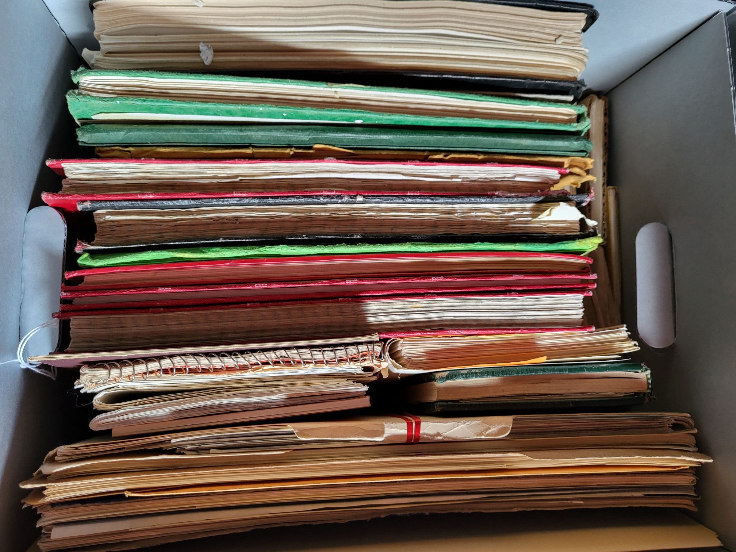 Two boxes of Robert (Bob) Bruce McCallum's notebooks, papers, and photocopied documents.