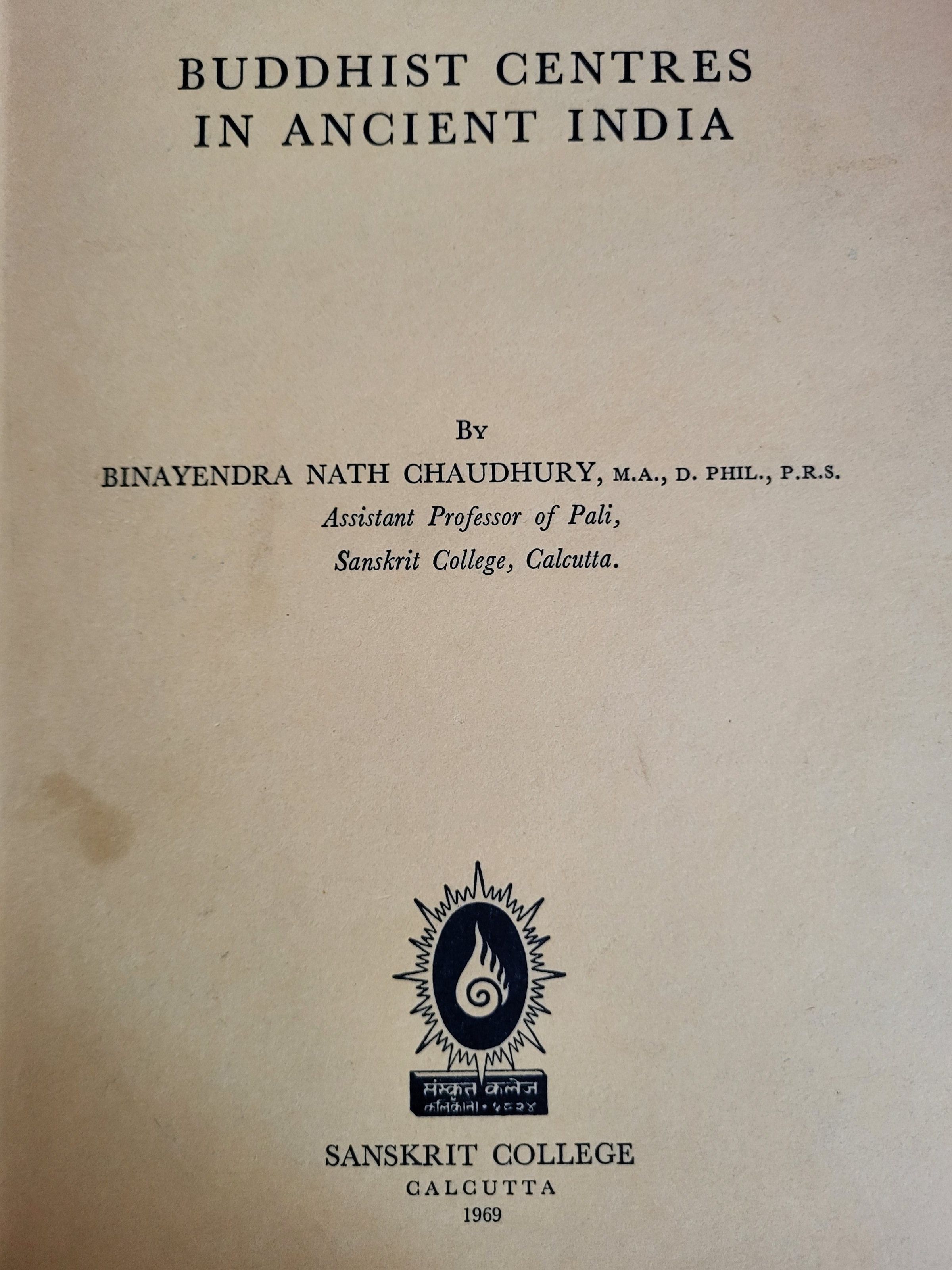 Buddhist Centres in Ancient India / by Binayendra Nath ChaudhuryEntry/Object ID