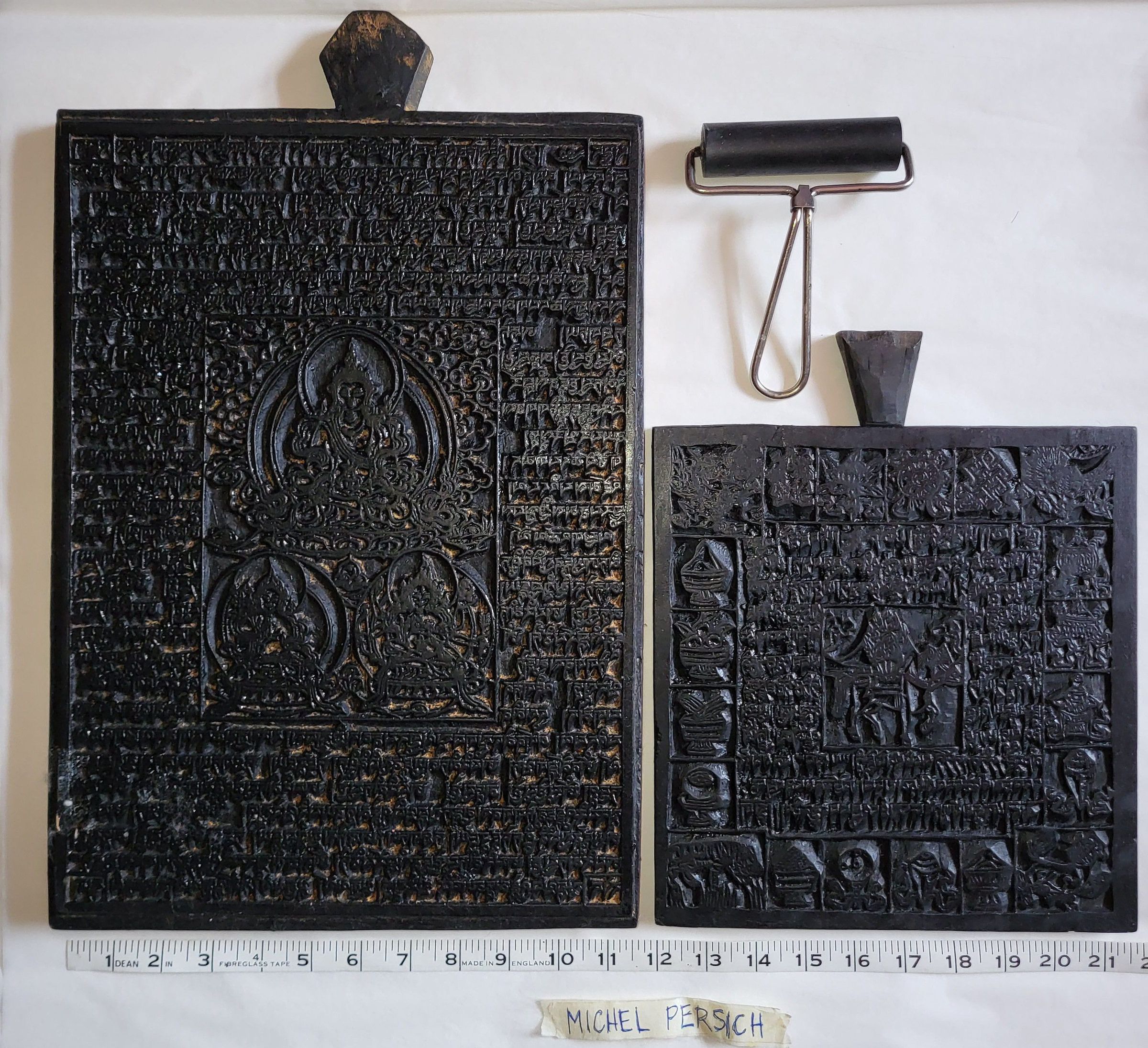 Buddhist Wood Printing Plates with Roller