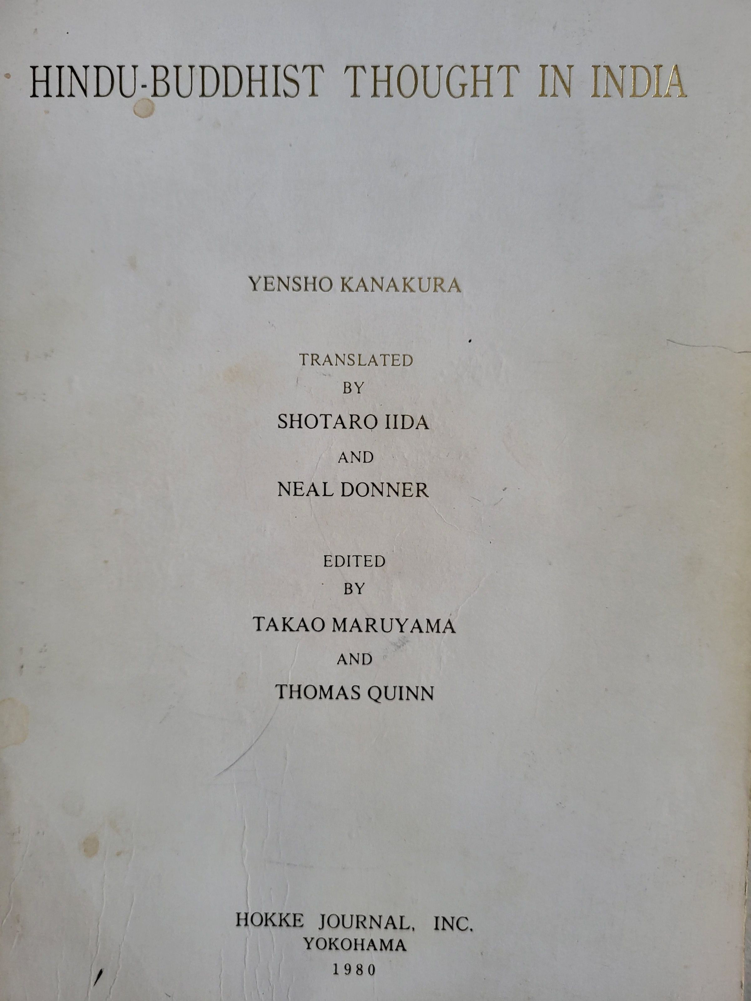 Hindu-Buddhist thought in India / Yensho KanakuraEntry/Object ID