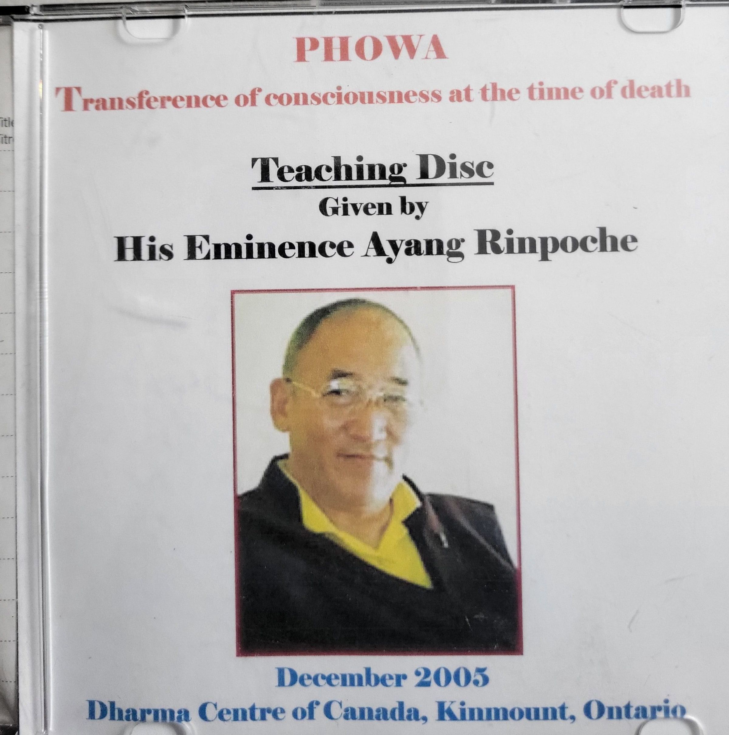 2024.1.3a Phowa Teaching Disc: Teaching given by His Eminence Ayang Rinpoche in December 2005 at the Dharma Centre of Canada, Kinmount, Ontario.