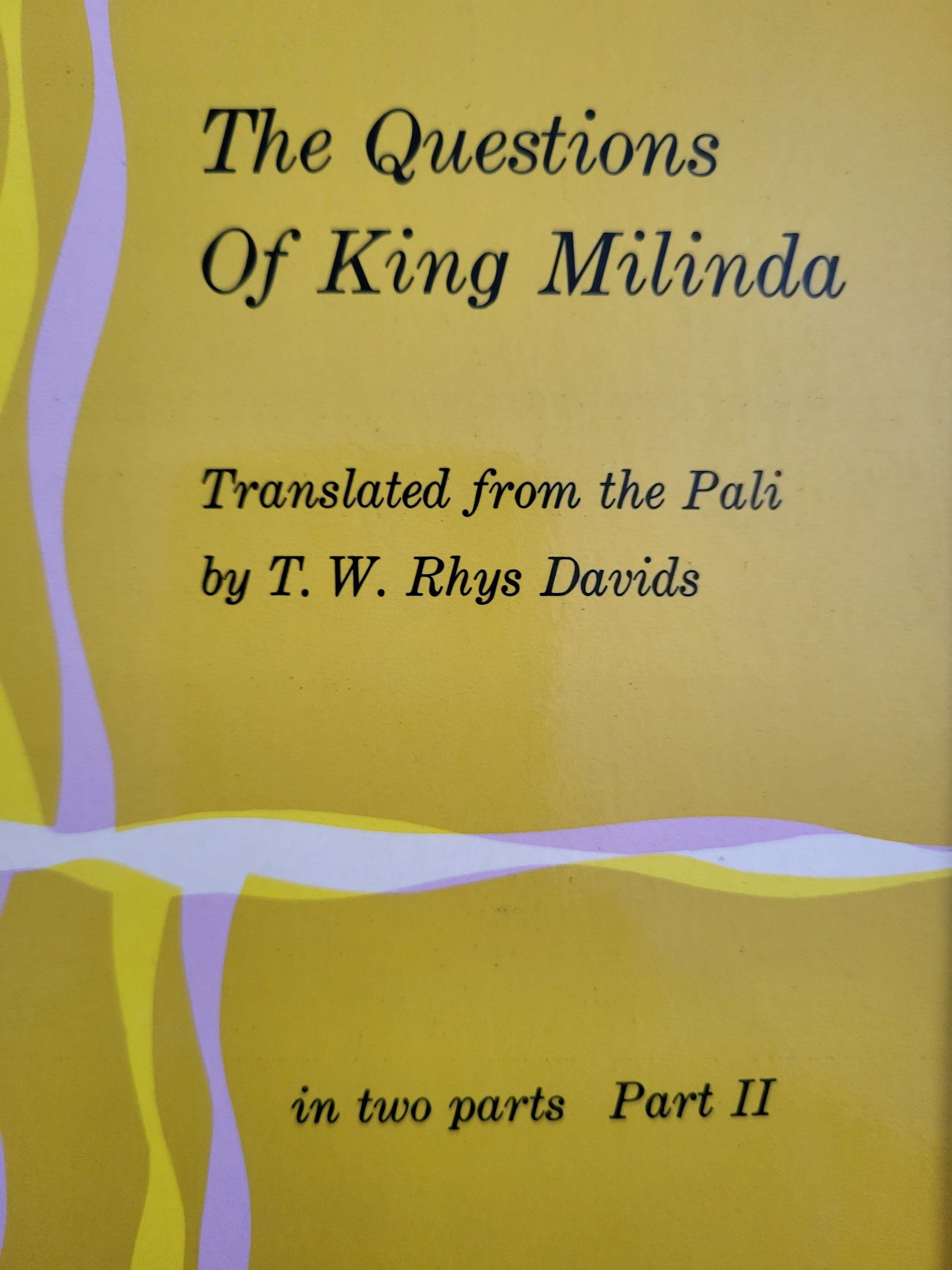 This Dover edition, first published in 1963, is an unabridged and unaltered republication of the work first published by the Clarendon Press, Oxford. "The Questions of King Milinda", part I, first published in 1890, is Volume XXXV of "The Sacred Books of the East" and Part II, first published in 1894, is Volume XXXVI of the same series.