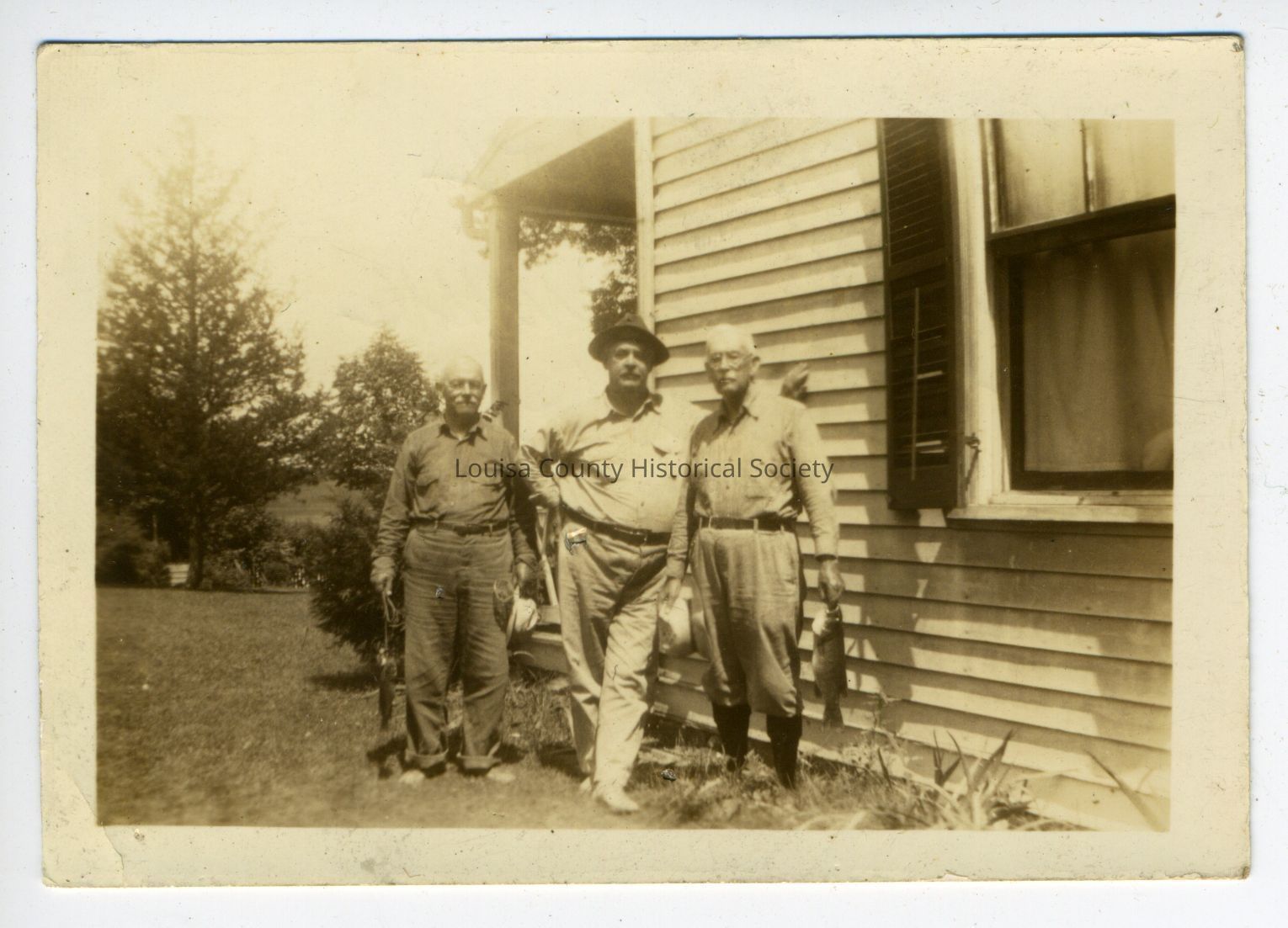 Photograph of three older men, two holding fish