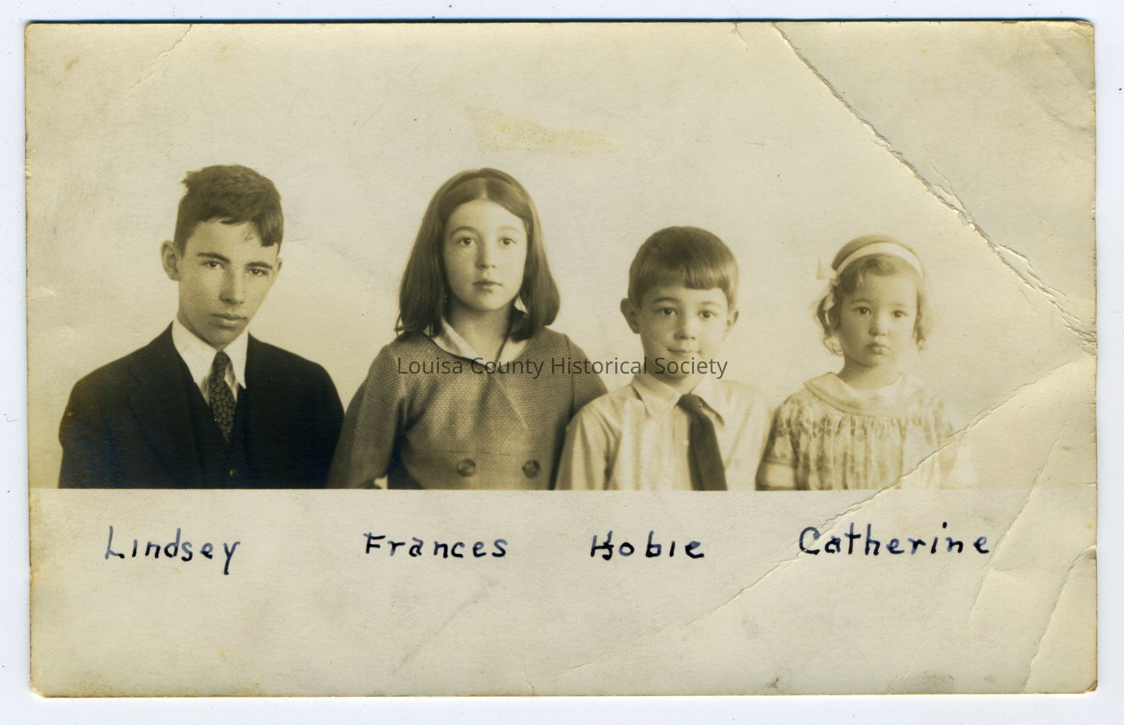 Photograph of four children, Lindsey, Frances, Hobie, and Catherine