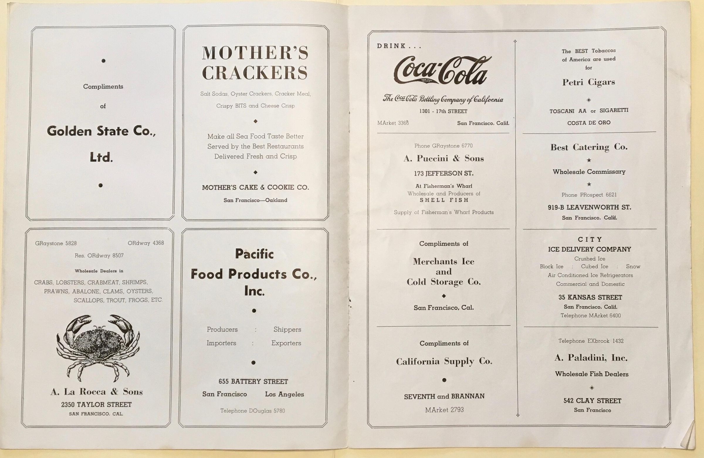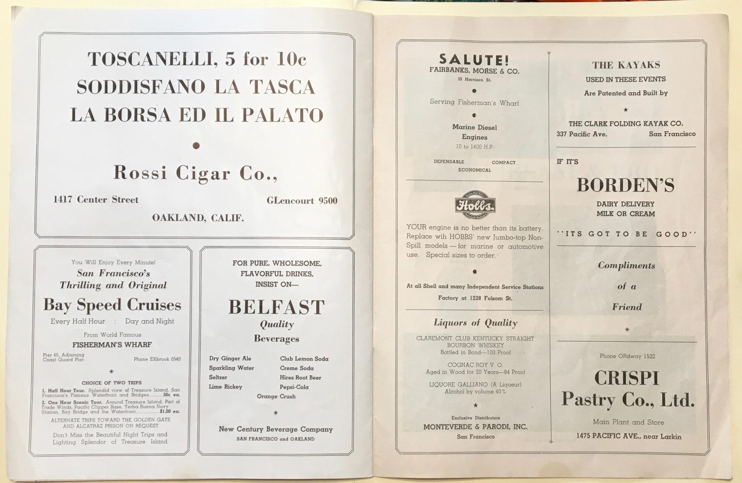 Most pages consist of paid ads from merchants, 5 pages show photos of Francisco, back page gives history of the area with a photo of crab boilers at Cresci Bros and A. Sabella.Archive Details