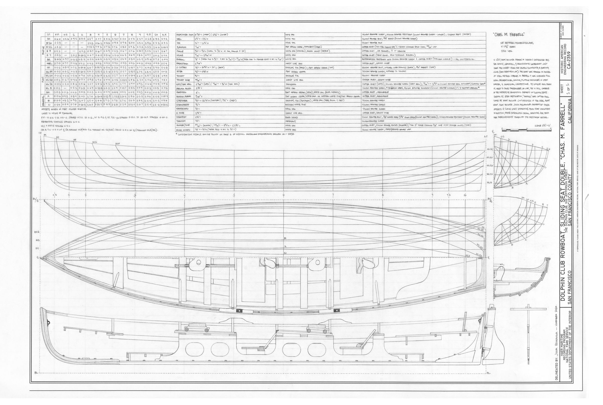 Built to specifications for the Dolphin Club in 1917. Rebuilt and lofted in 1986 in the Dolphin Club boatshop.Relationships