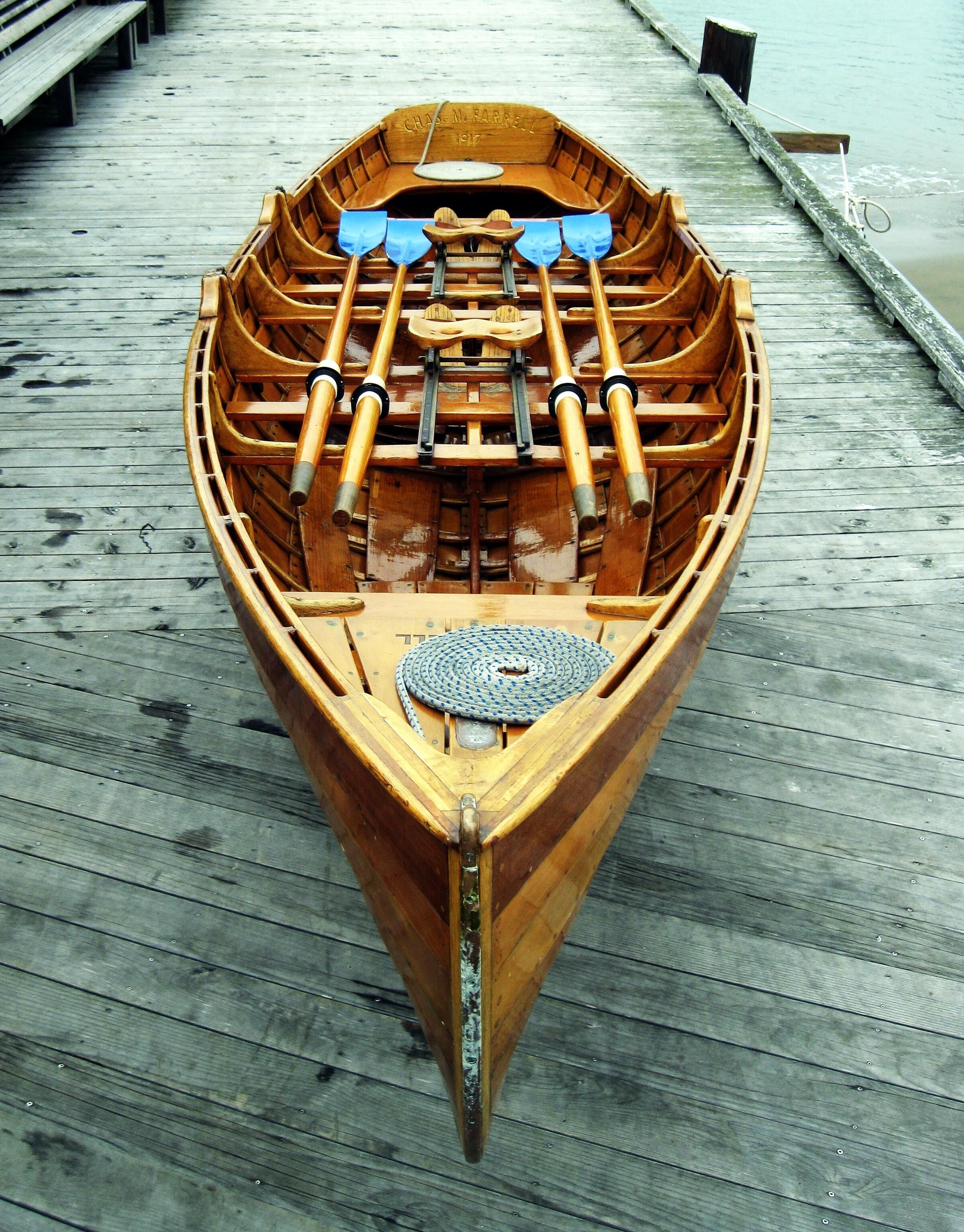 The wooden boat CHAS. M. FARRELL, a Dolphin Club Sliding-Seat Lapstrake Double.Use
