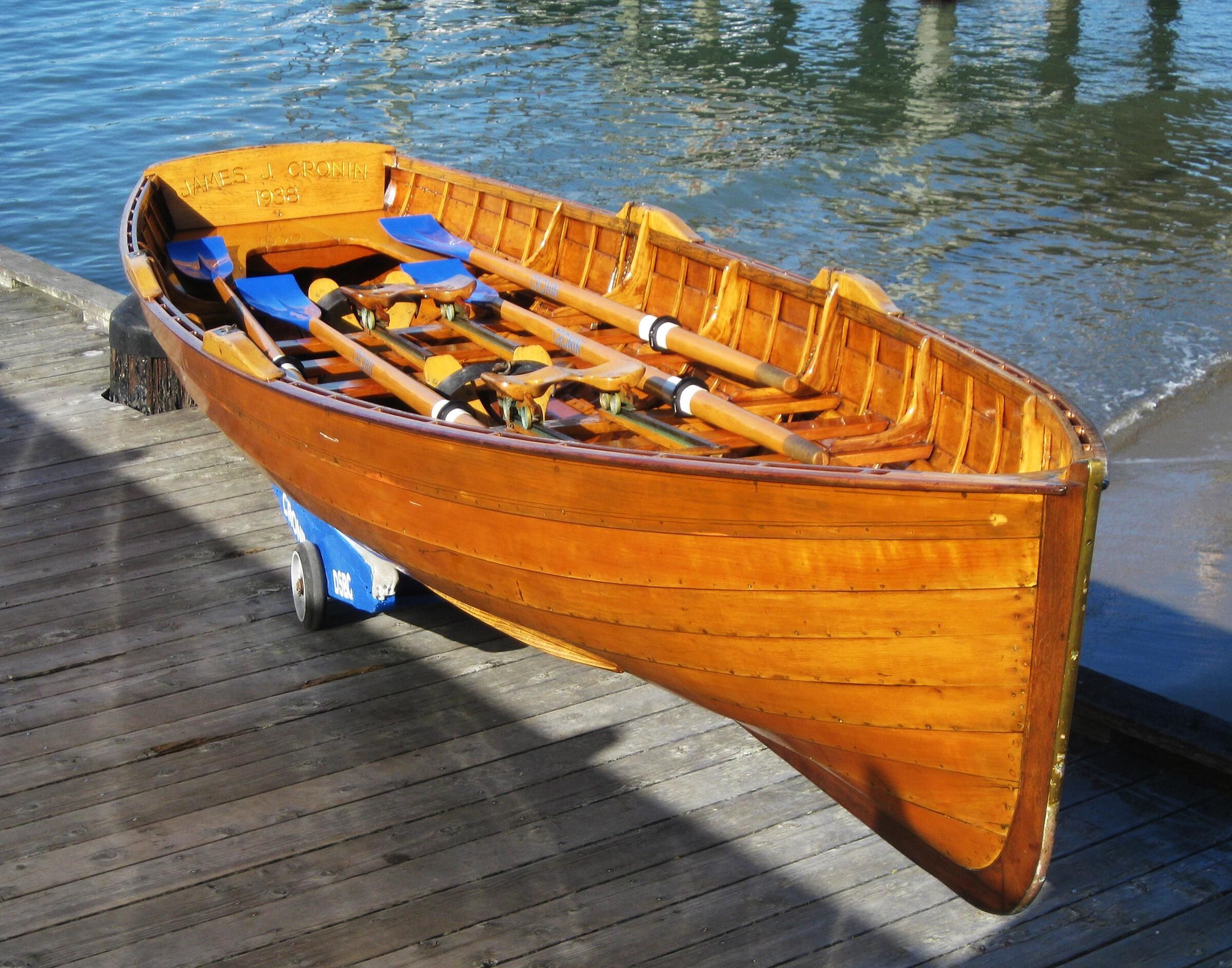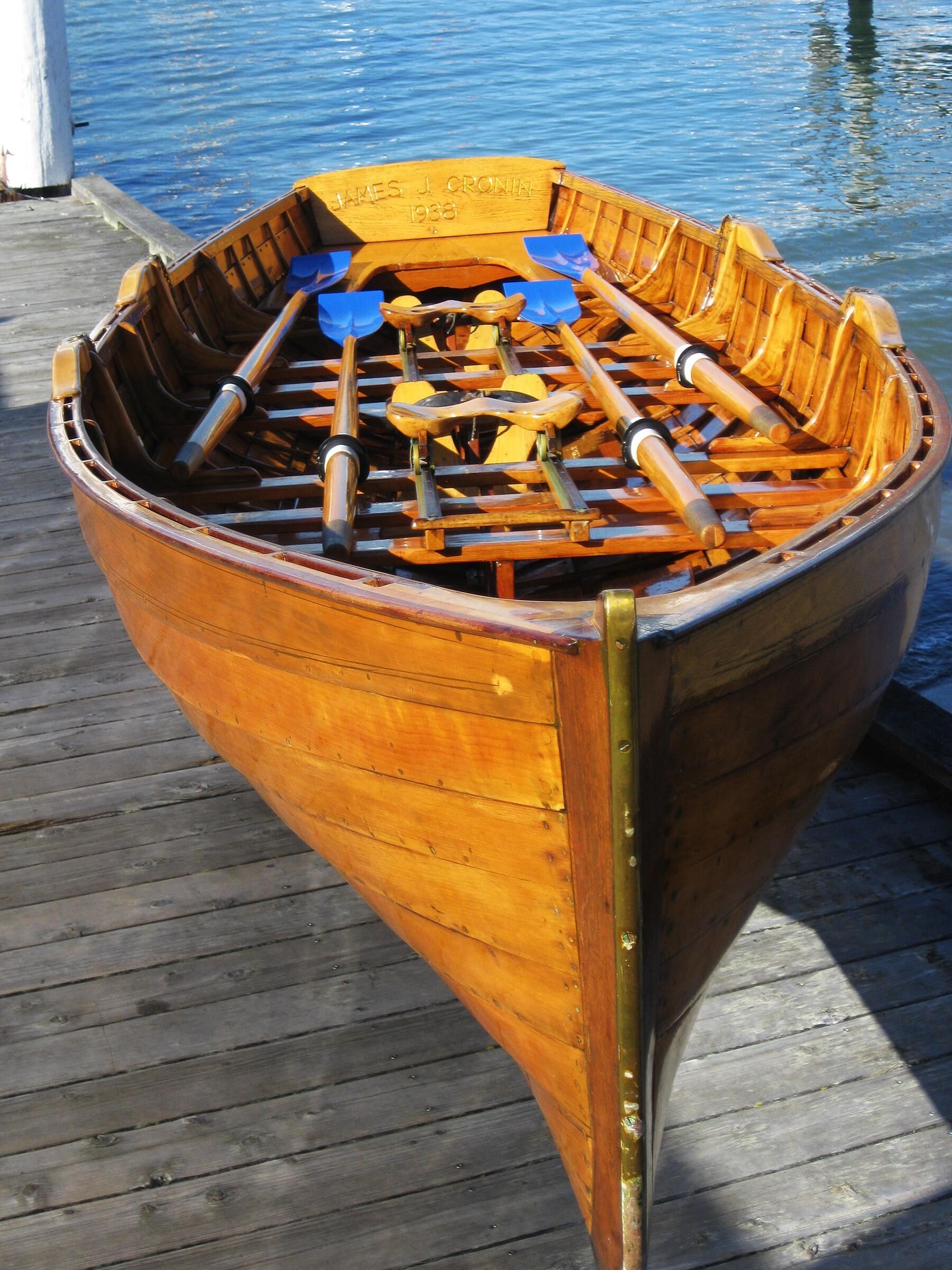 The wooden boat JAMES J. CRONIN, a Dolphin Club Sliding-Seat Lapstrake Double.Use