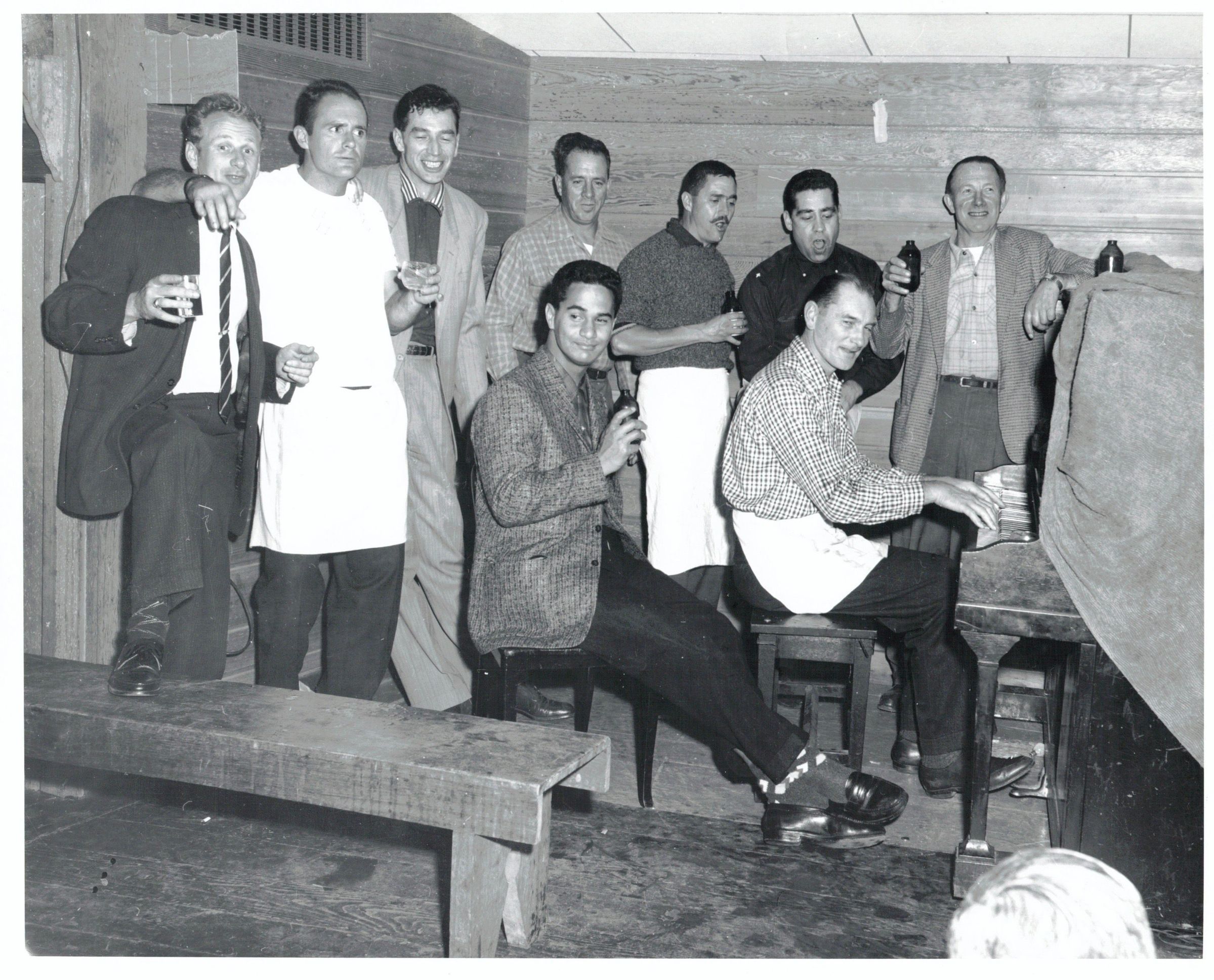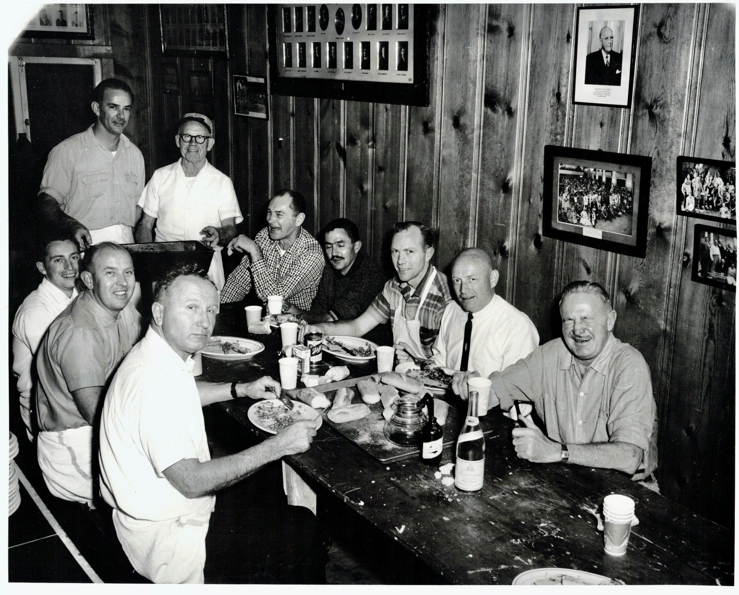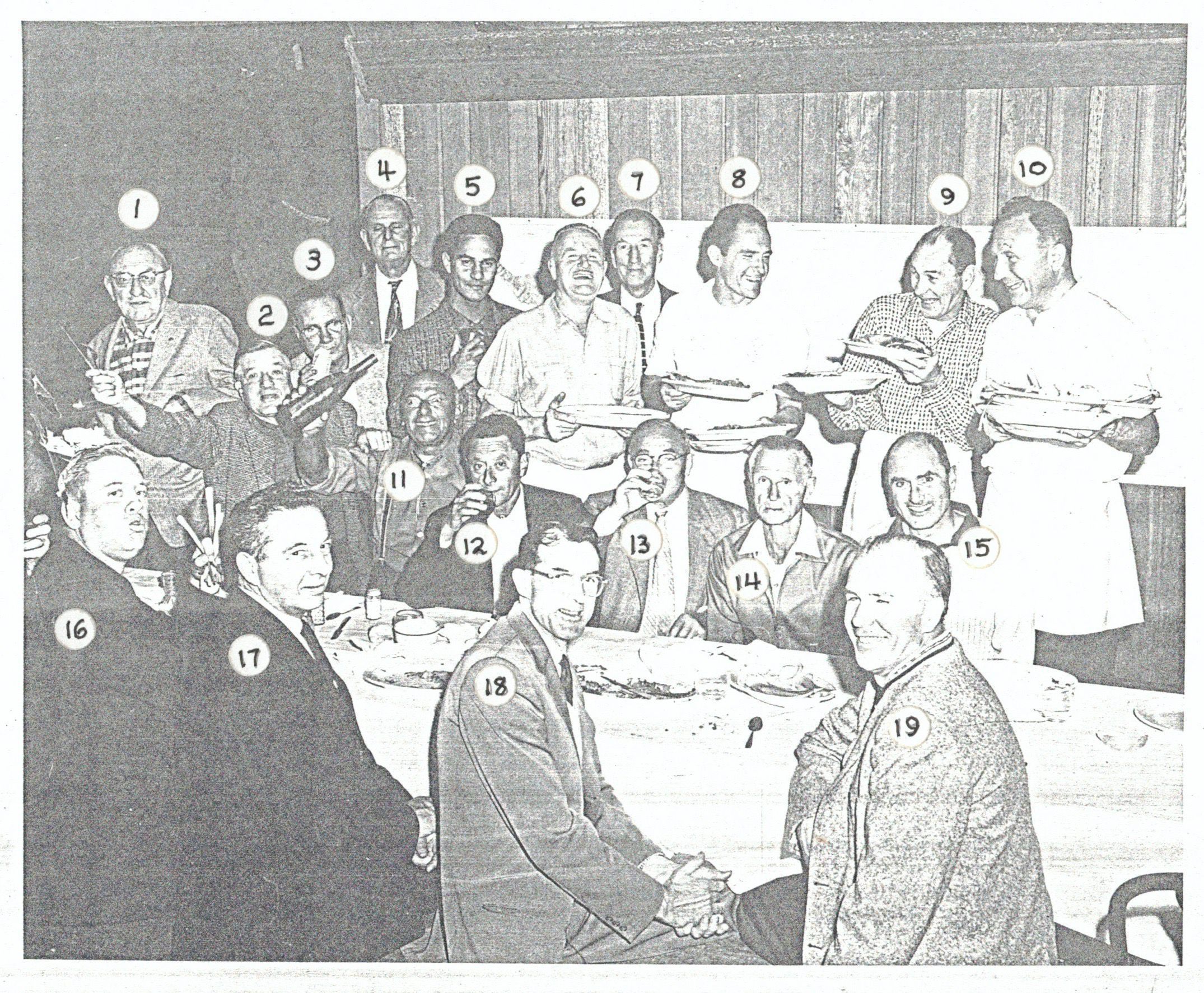 Five candid photos of members attending and serving at 1960 Old Timers Dinner.Made/Created