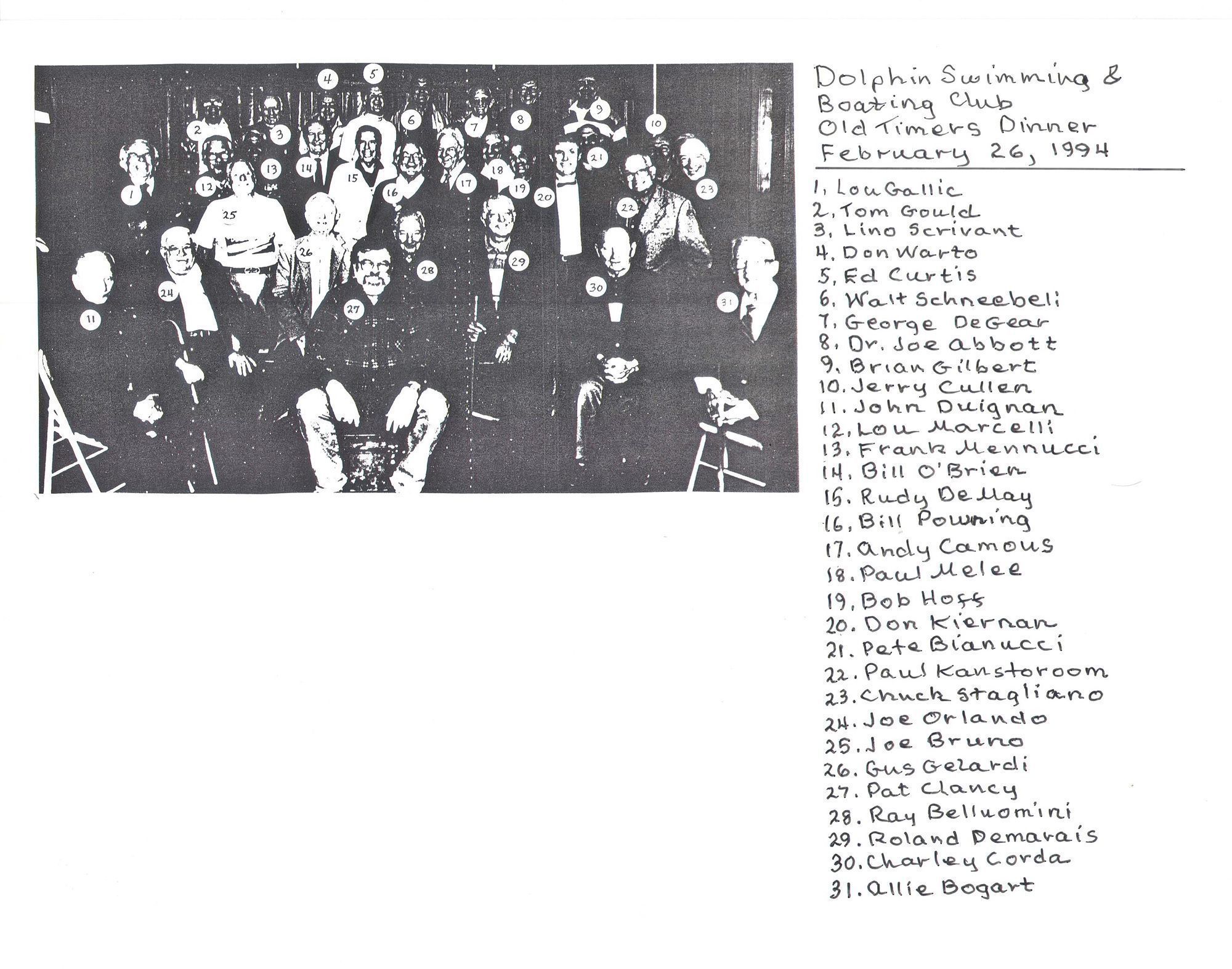 Walt Schneebeli, Lou Marcelli, Frank Mennucci, Joe Bruno, Lou Gallic, Pete Bianucci, Rudy DeMay, Thomas Gould, Gerald "Jerry" Cullen, Bob Hoff, Bill Powning