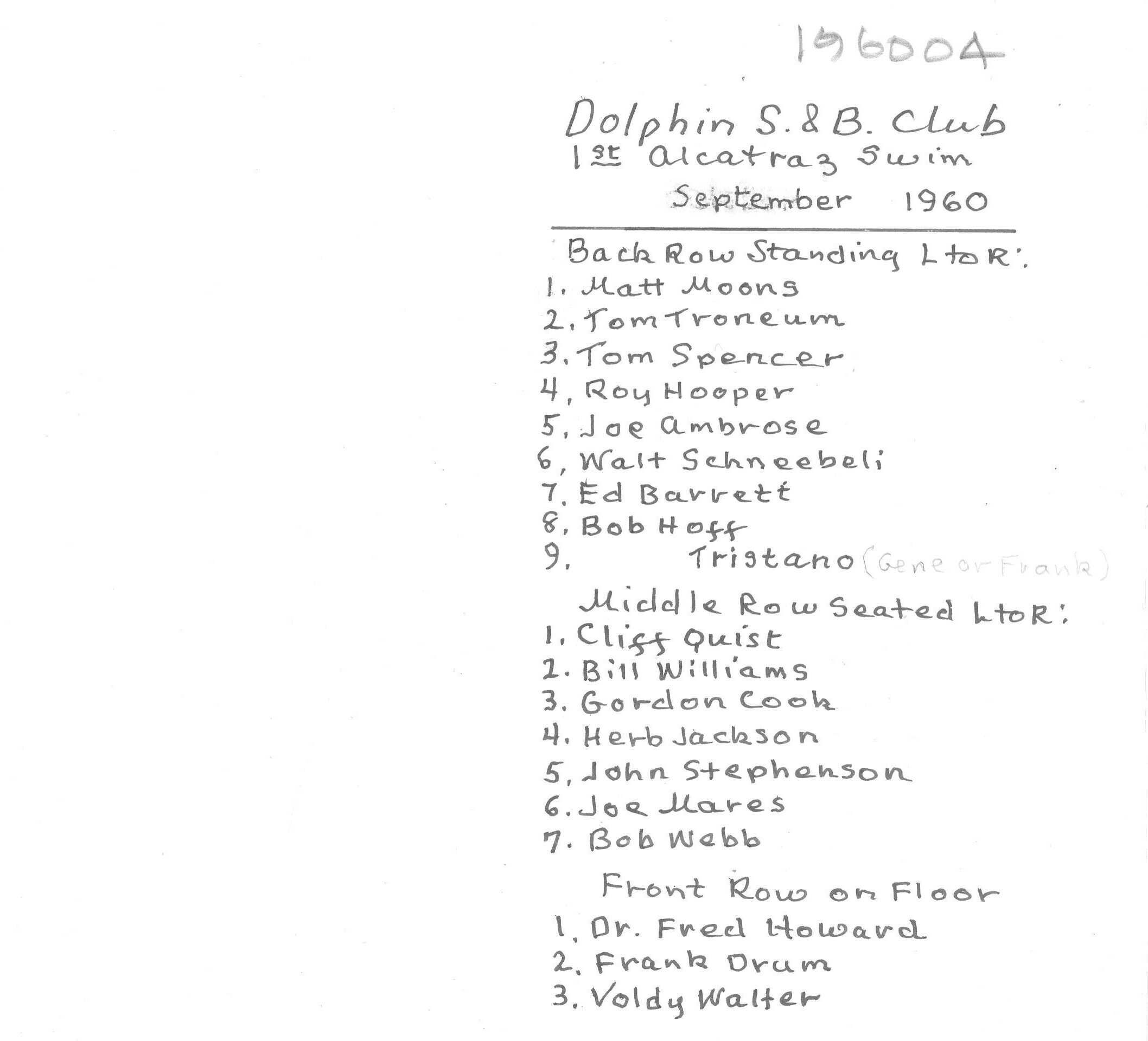 The First Organized Dolphin Club Alcatraz Swim, won by Bill WilliamsSubject Person or Organization