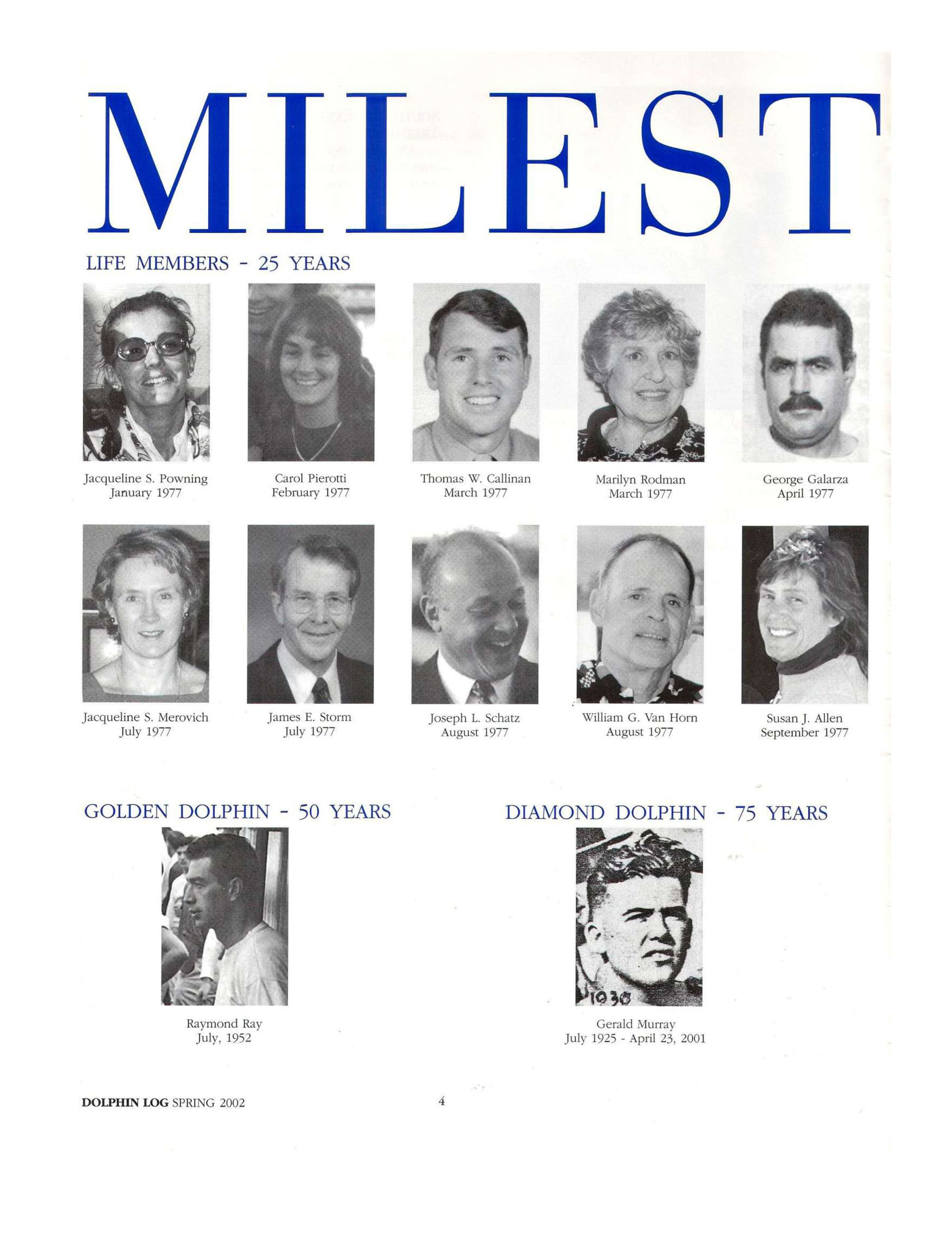 From Spring 2002 Log 2002 is year women first became Life Members, those joining in 1977. (Not all are pictured.)