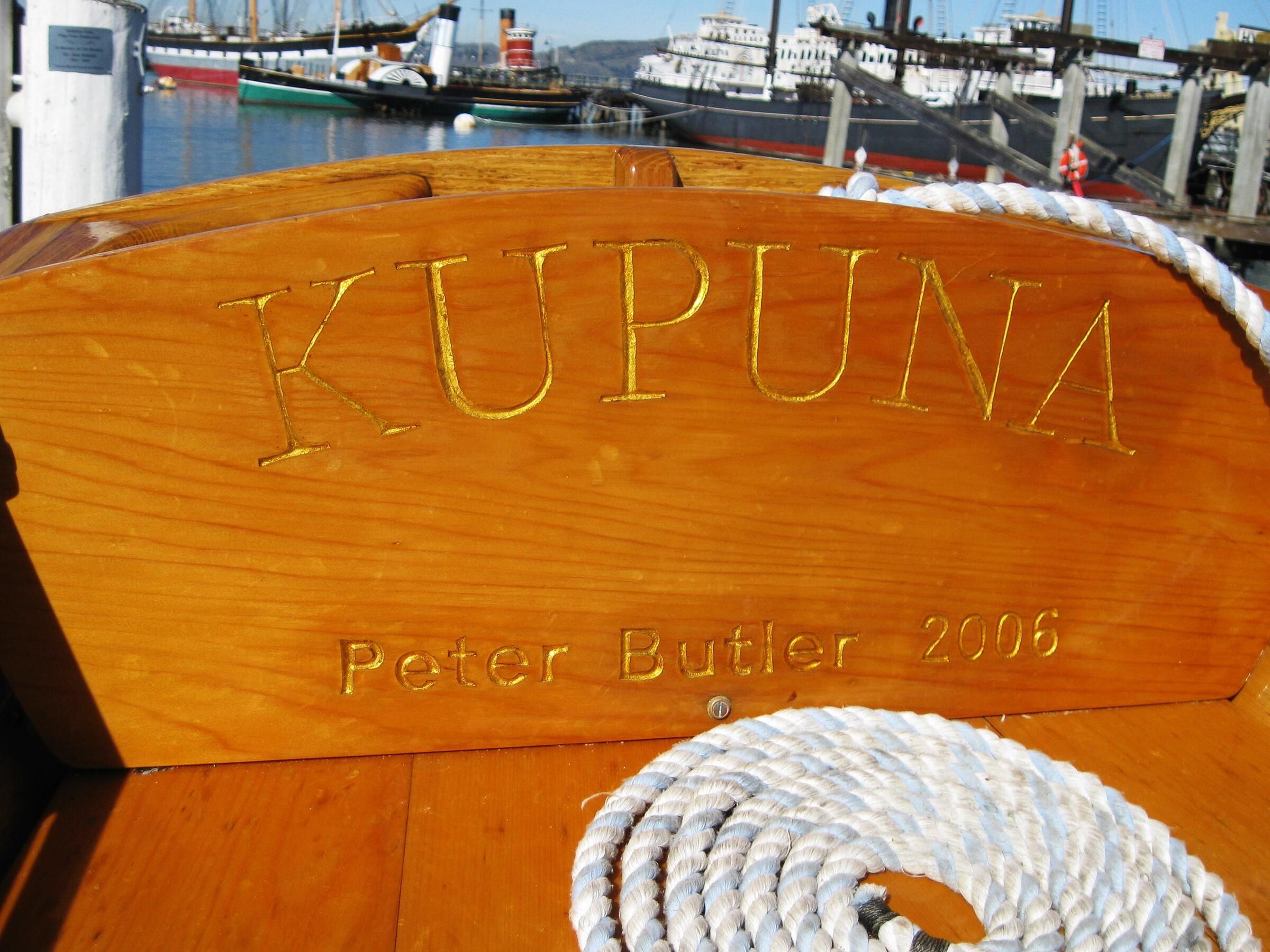 Newsletter Article: Fall 2005, Page 2, "KUPUNA Nears Completion" by Peter R. Butler, and Spring 2007, Page 3, photo of launching on Nov 5 2006.