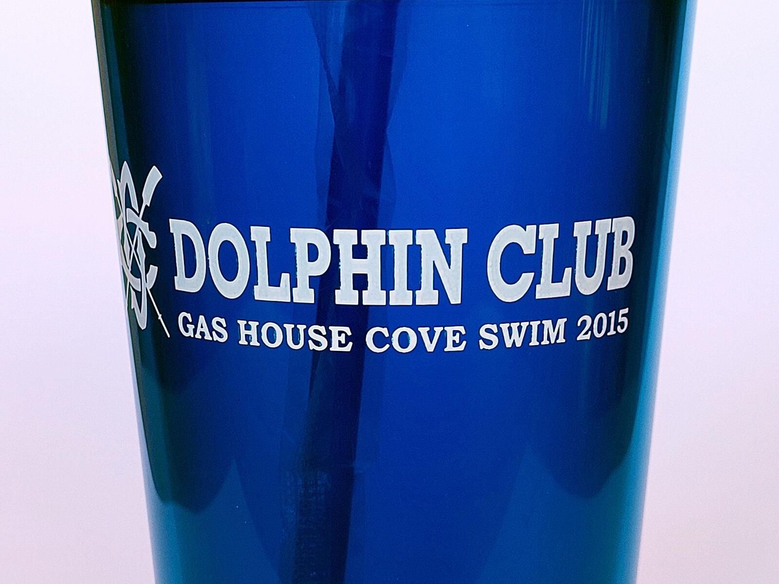 Plastic cup with straw from the 2015 Gas House Cove Swim (6" H X 3-1/2" Diameter at top)