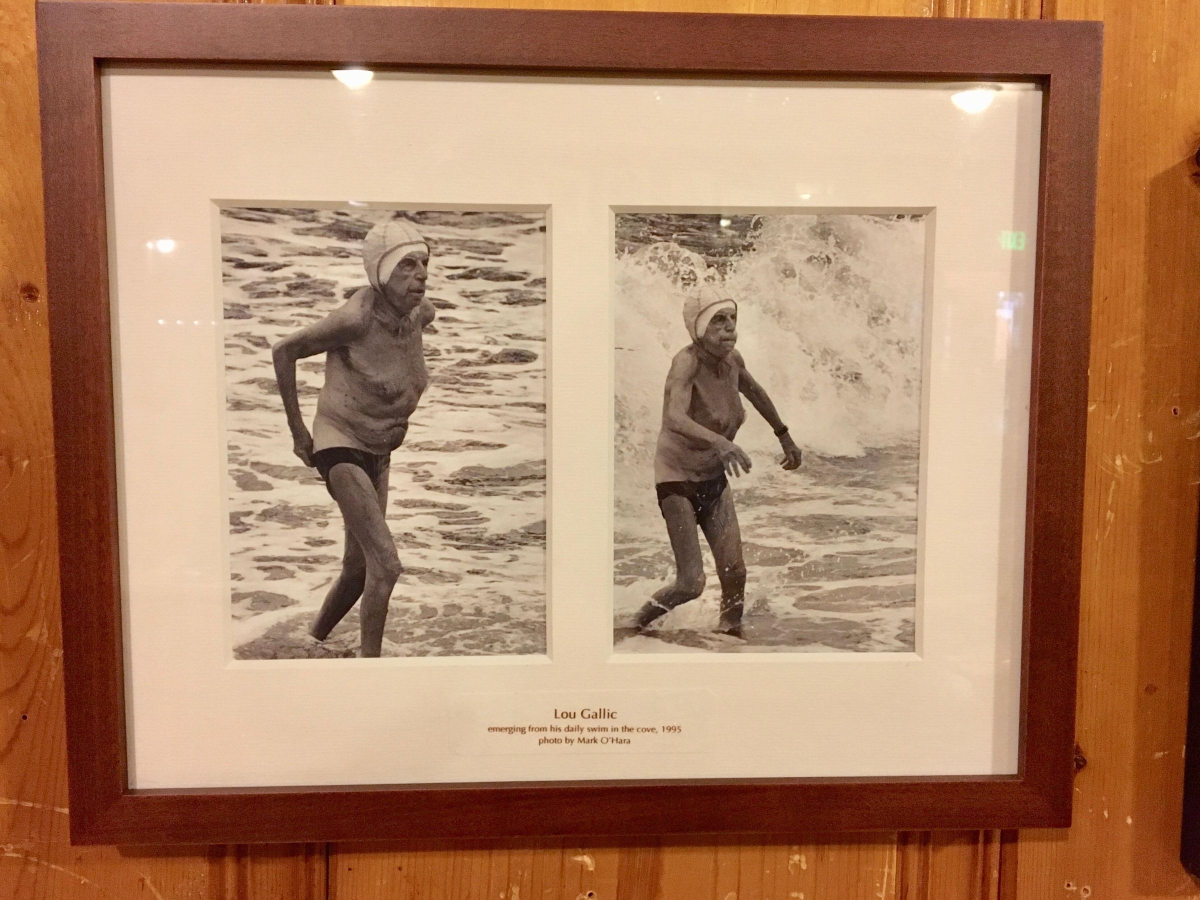 Two photographs of life member Lou Gallic coming out winter waves on the beach. Lou was a member from 1956 to 1998.