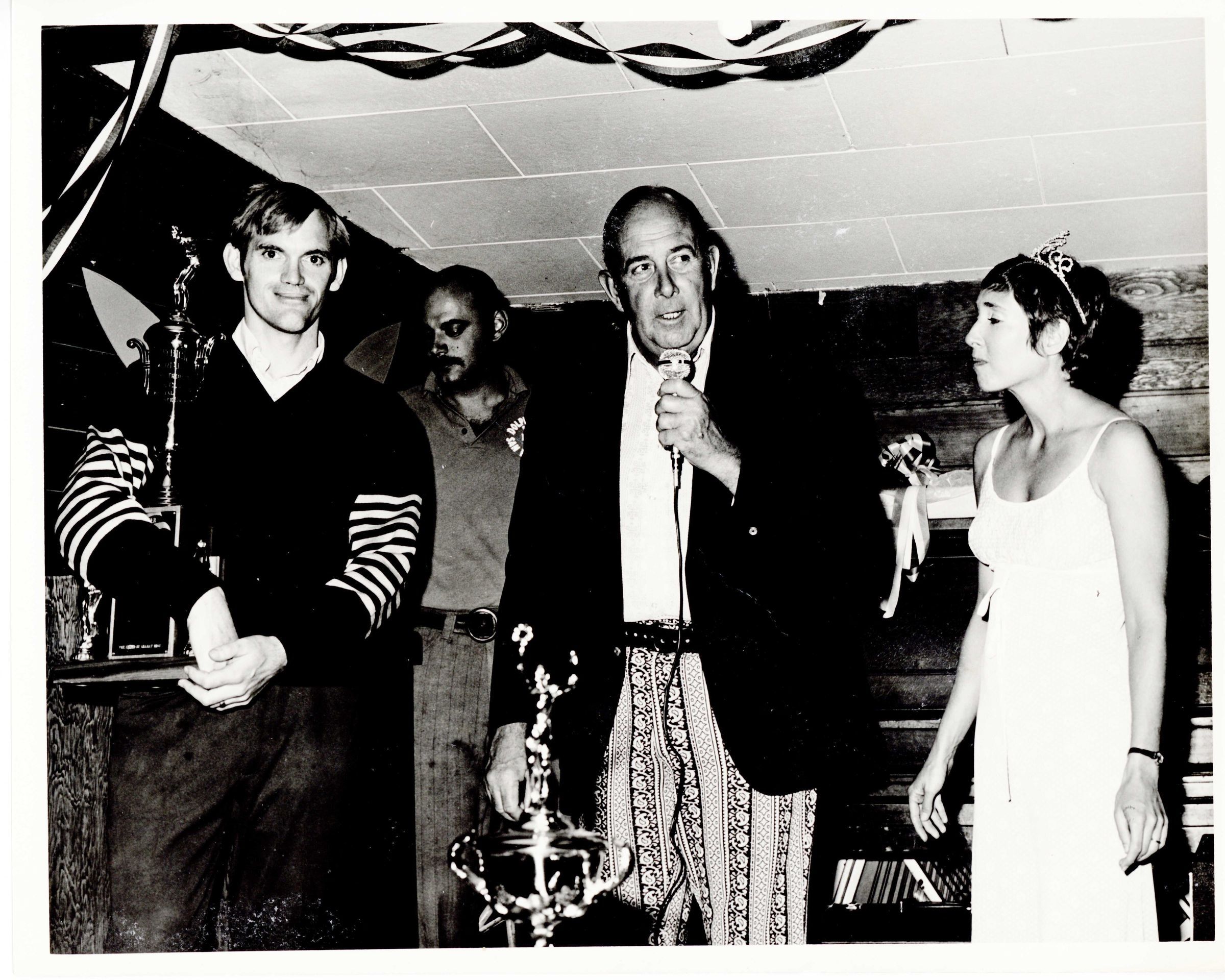 Awards being presented by Swim Queen Joan Cook (artist Joan Brown) 1973Subject Person or Organization