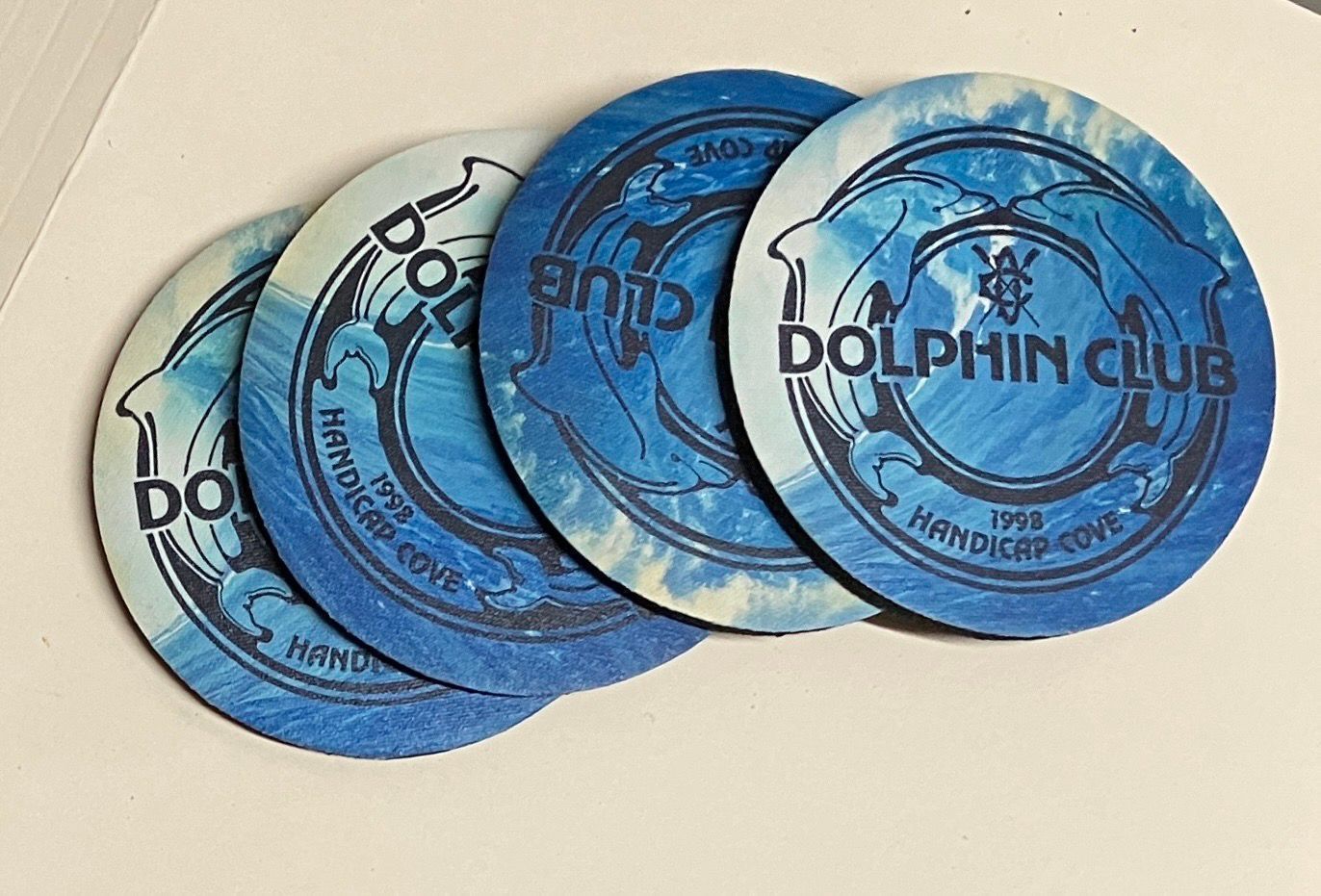 Printed in black on the vinyl top: The DC logo with two dolphins inside a round border, small crossed oars logo inside, Dolphin Club across middle, and the space on the bottom of the logo contains text: "1998 Handicap Cove."Use