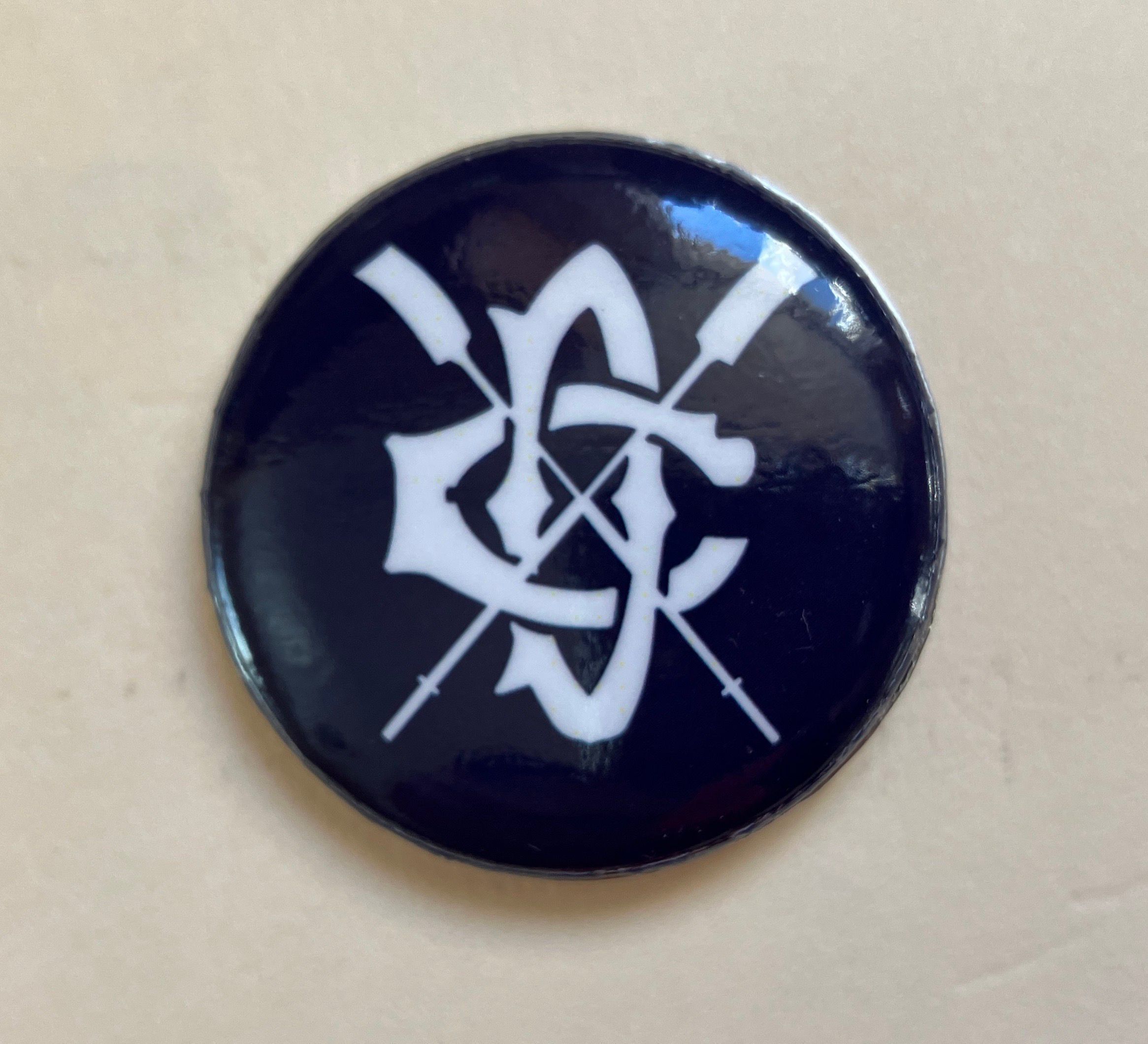 Round pin, blue field with white crossed oars DC logo. First presented at Gas House Cove swim in February 2023.