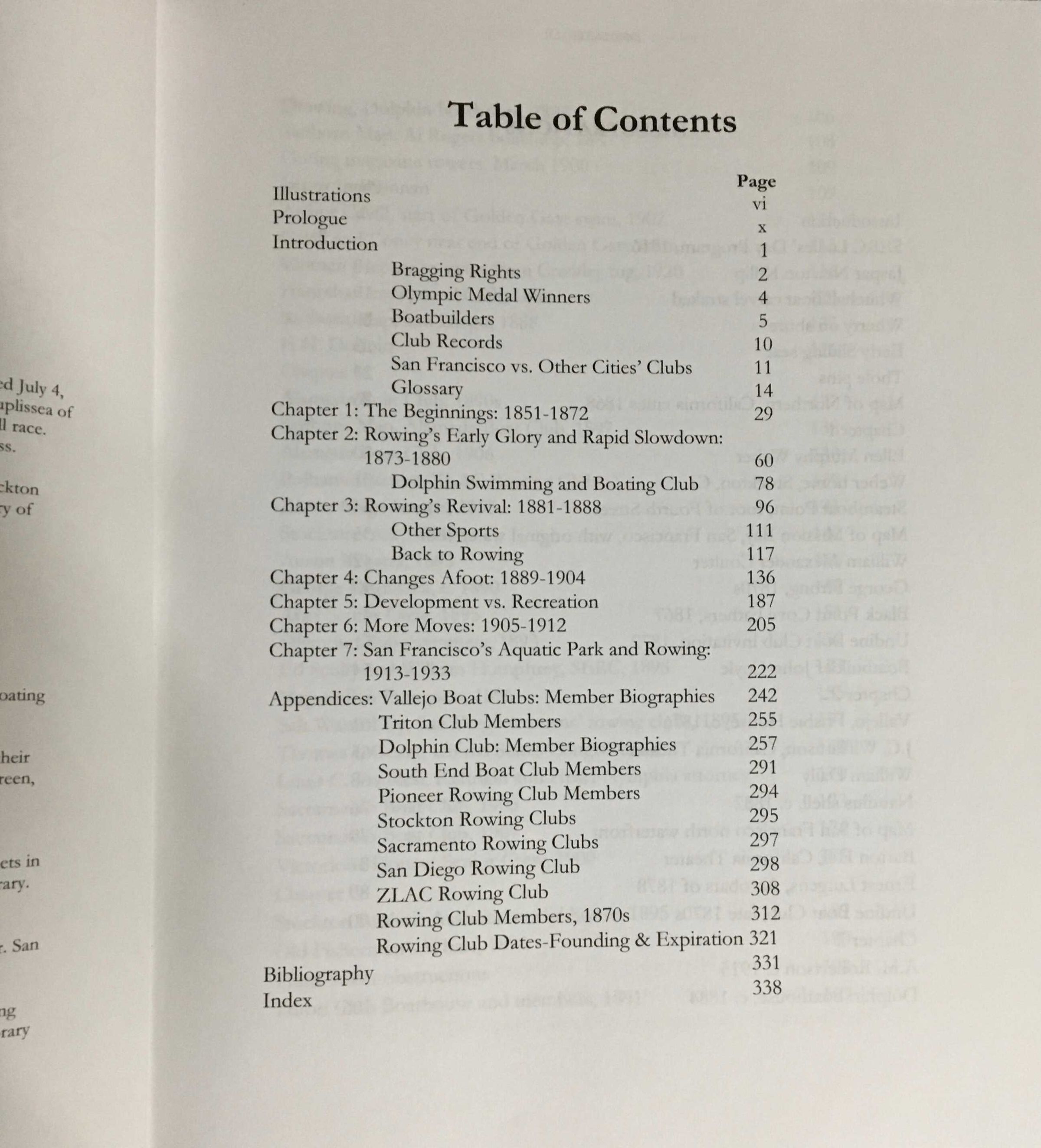 Book by historian Bill Pickelhaupt entitled "The Rowing Clubs of California 1851-1933" looking at rowing clubs up and down coast and Sacramento and Stockton during that time period, including the Dolphin Club. In the appendix p. 257-290 are names and bio info on early prominent Dolphin Club members. 360 pages.Book Details