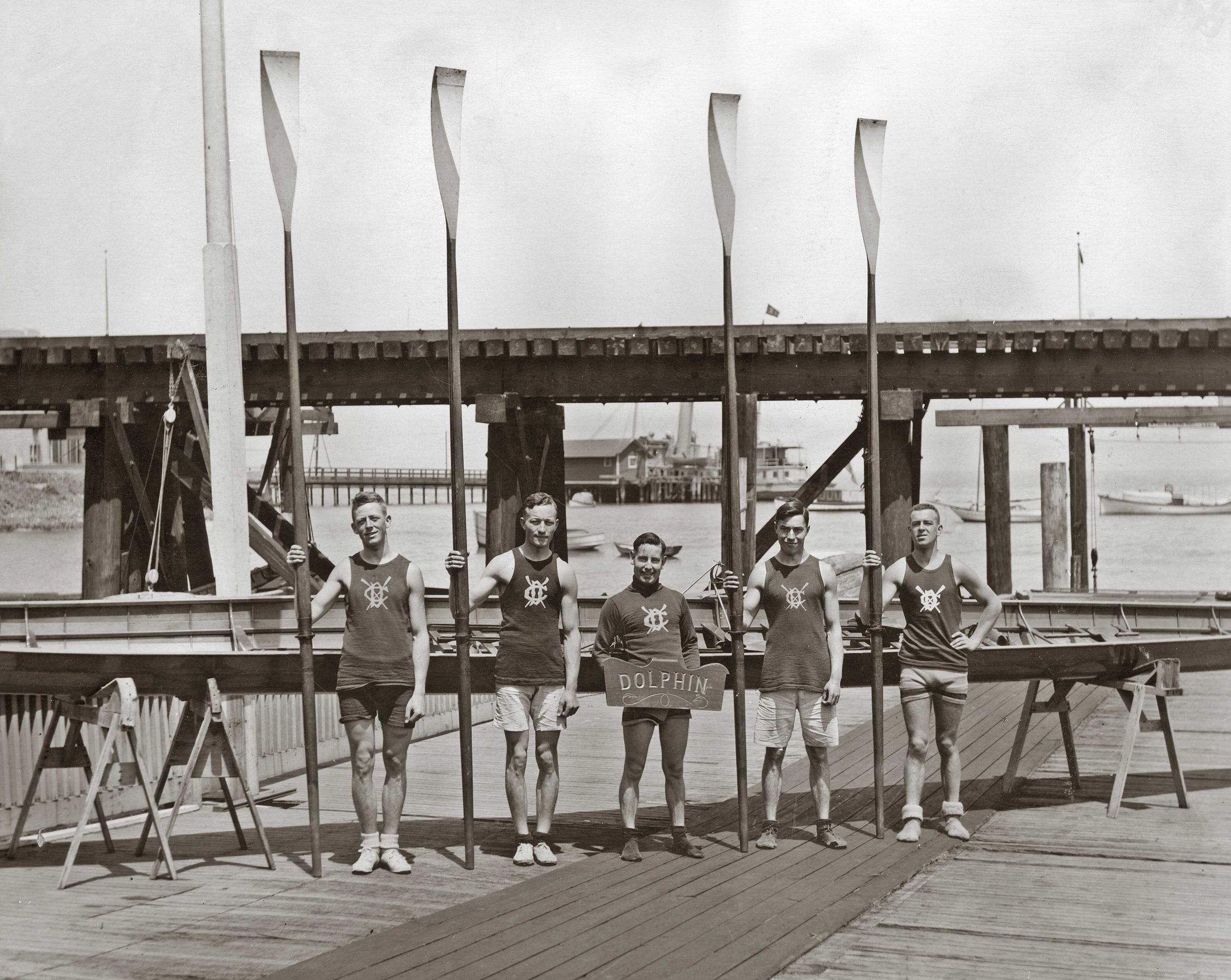 Champion Crew 1913-1914-1915 wtih barge named "Dolphin"
