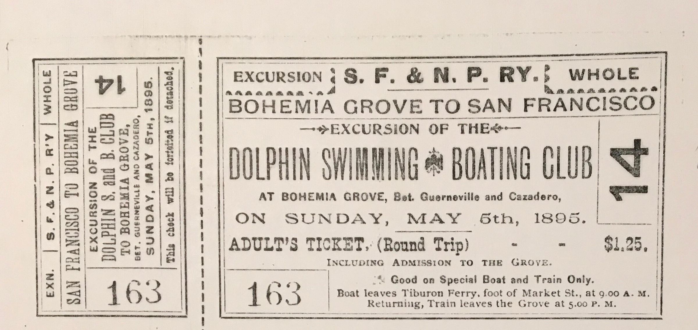 Copy of train ticket and very poor copy of invitation card to annual excursion on May 5, 1895 at Bohemia Grove.