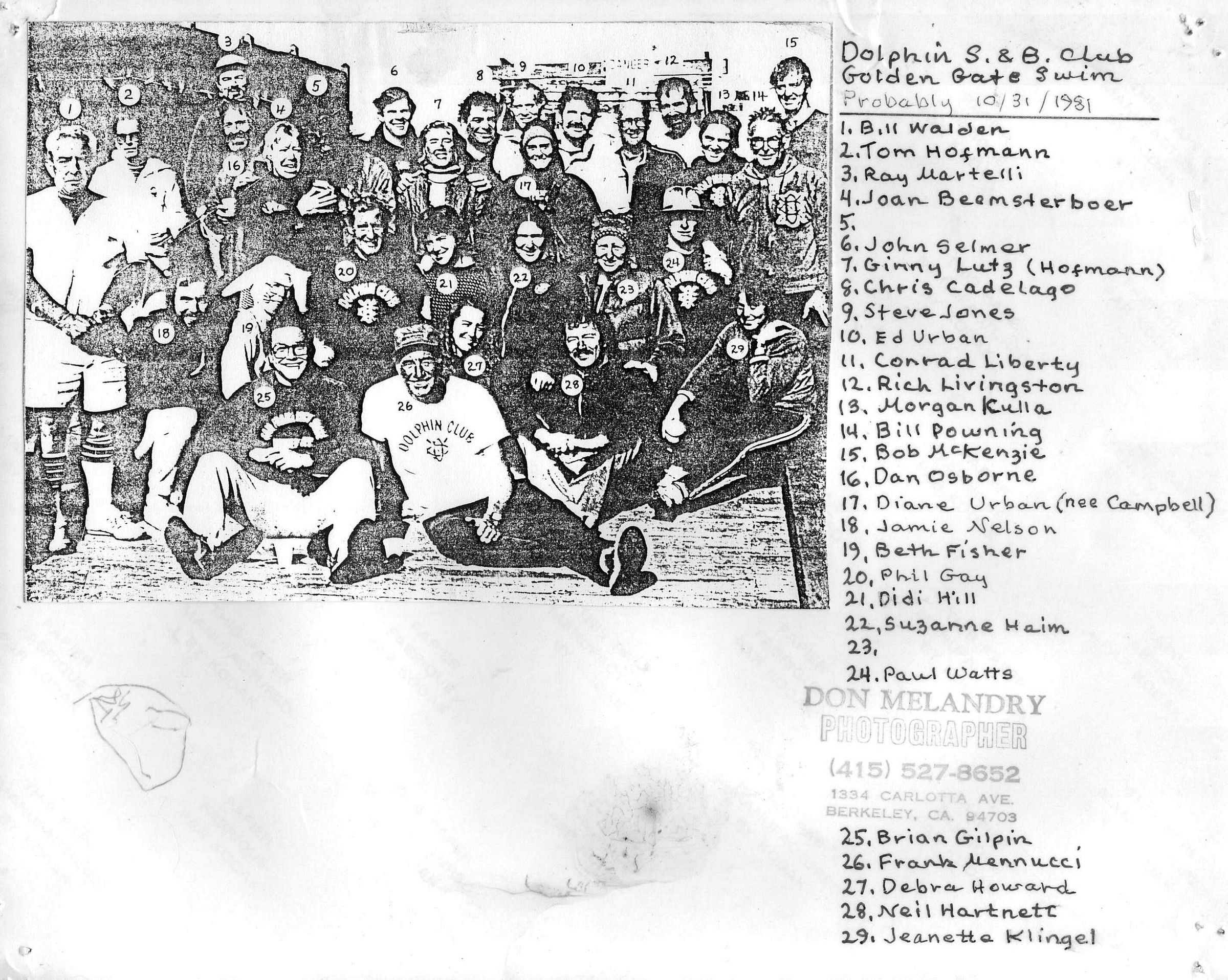 Golden Gate swimmers 1981Subject Person or Organization