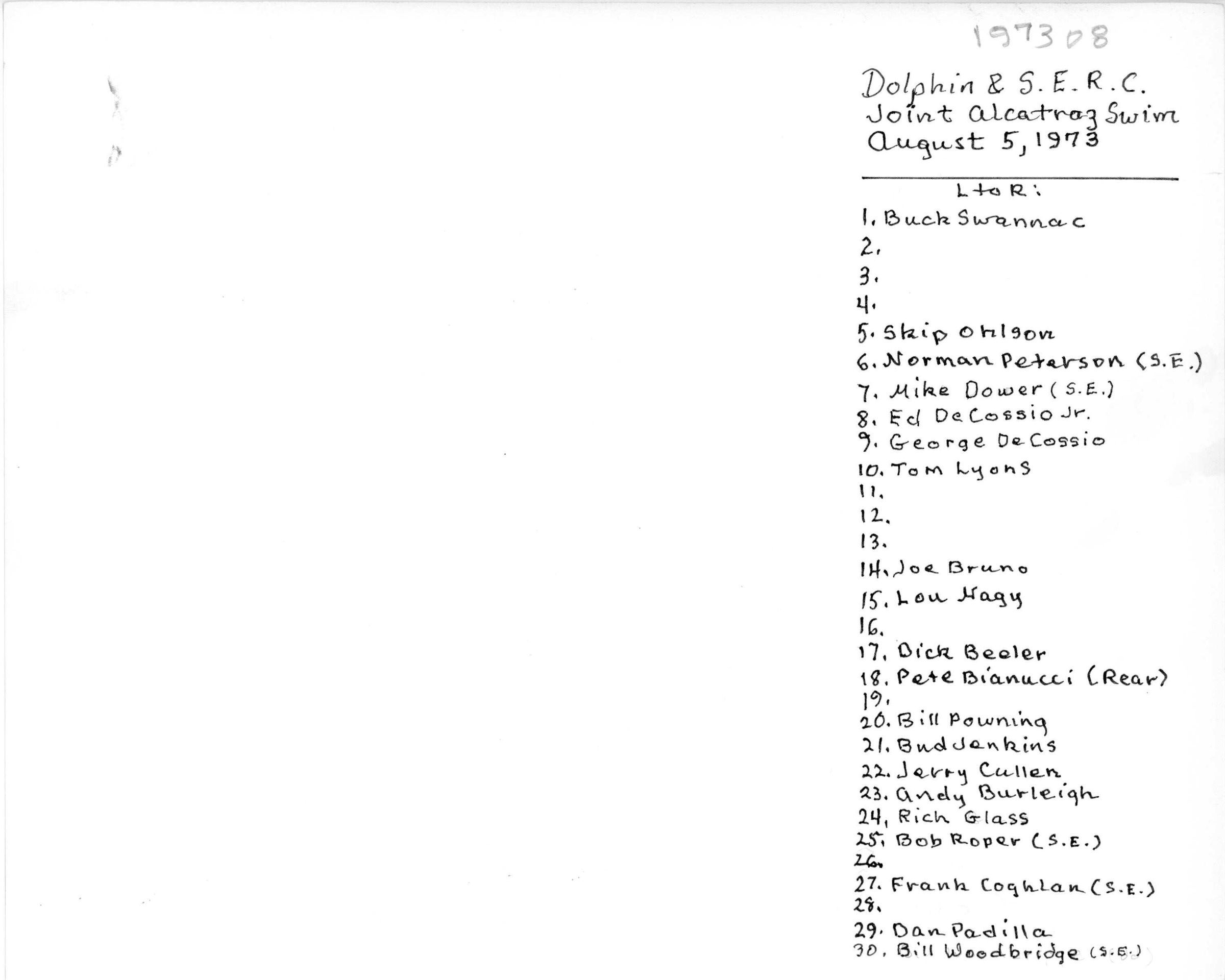 Dolphin Club Alcatraz Swim 1973Subject Person or Organization
