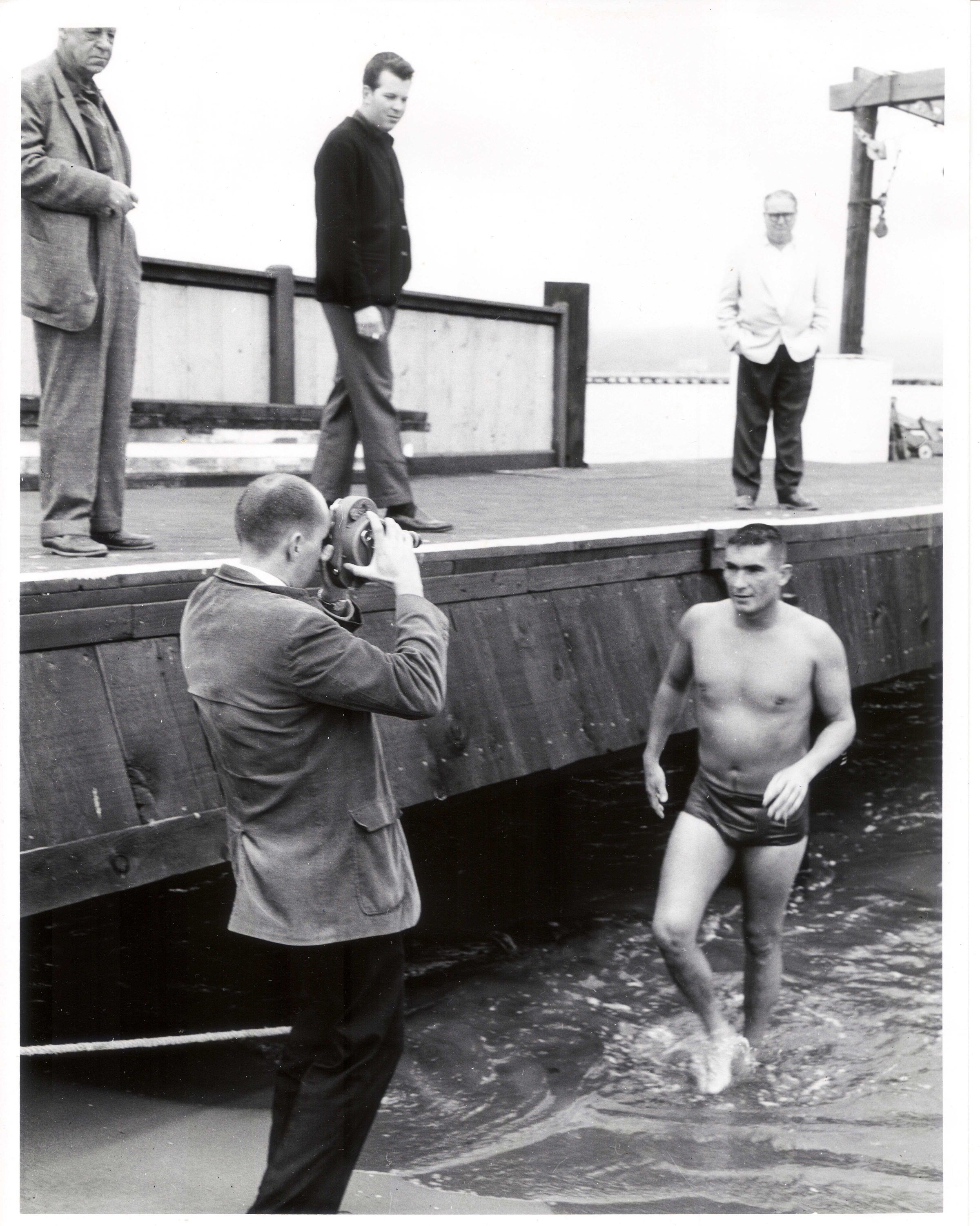 Jim Small finishings the Alcatraz Swim 1962