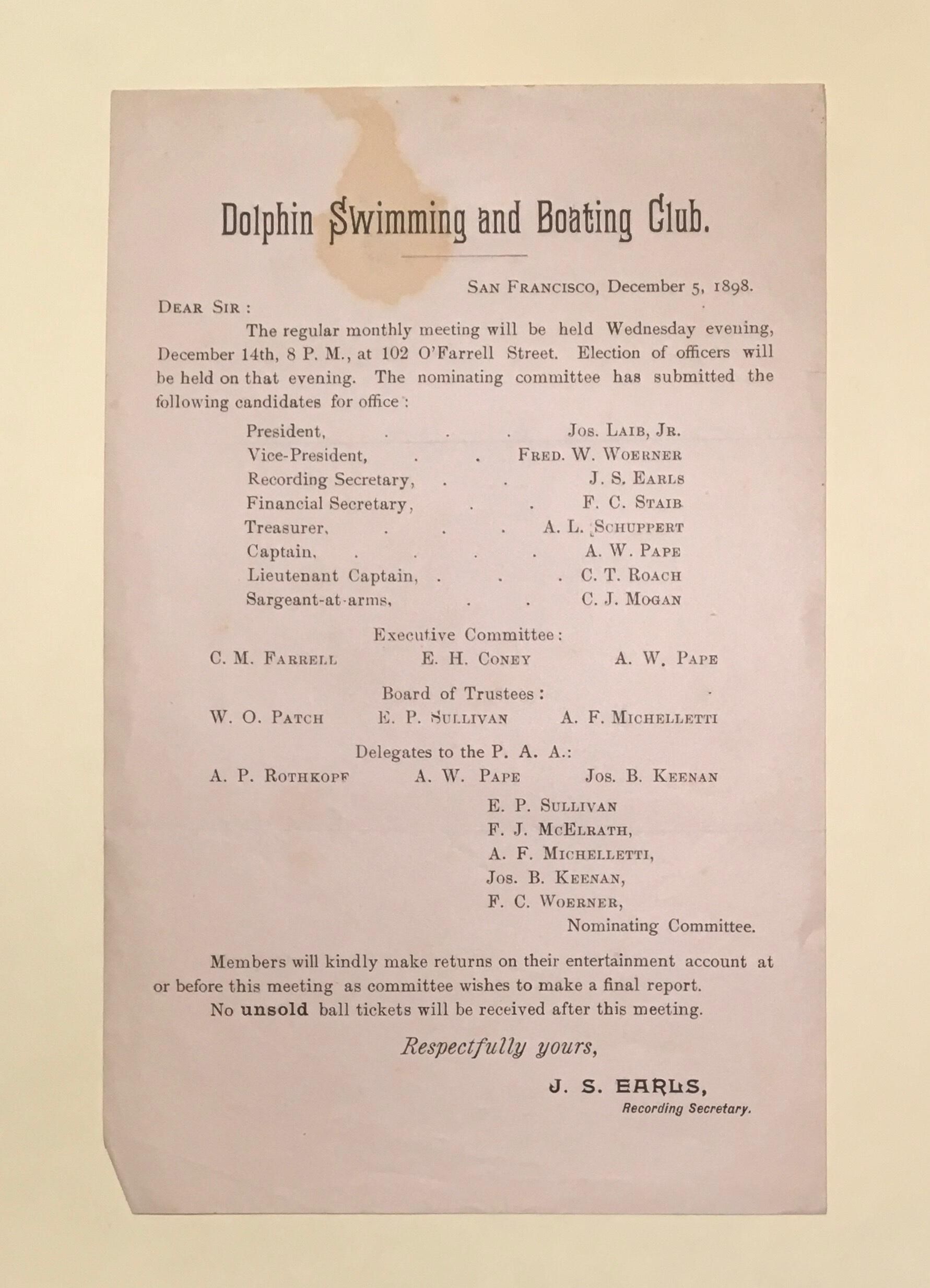 Meeting to be held on December 14th, 1892, at 102 O'Farrell Street, at 8 PM.Archive Details