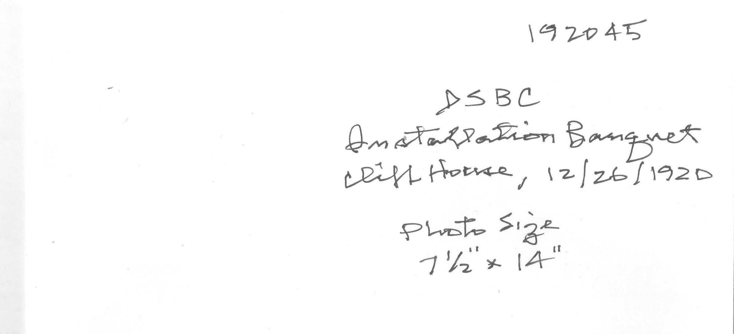 Also in Ephemera (1920) is original of the program for this event which includes new officers for 1920, menu, and full list of members.Photograph Details