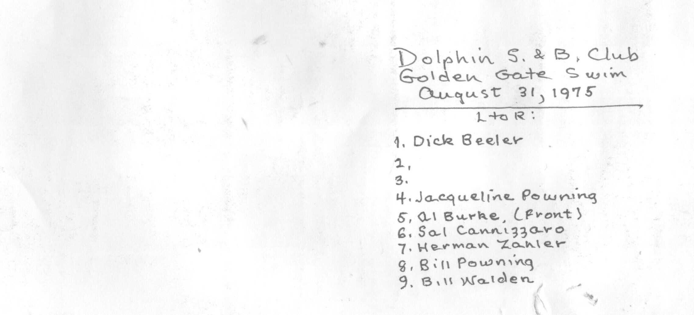 Members and guests celebrating after the Gate Swim 1975: Others are Al Burke, Sal Cannizarro,Subject Person or Organization