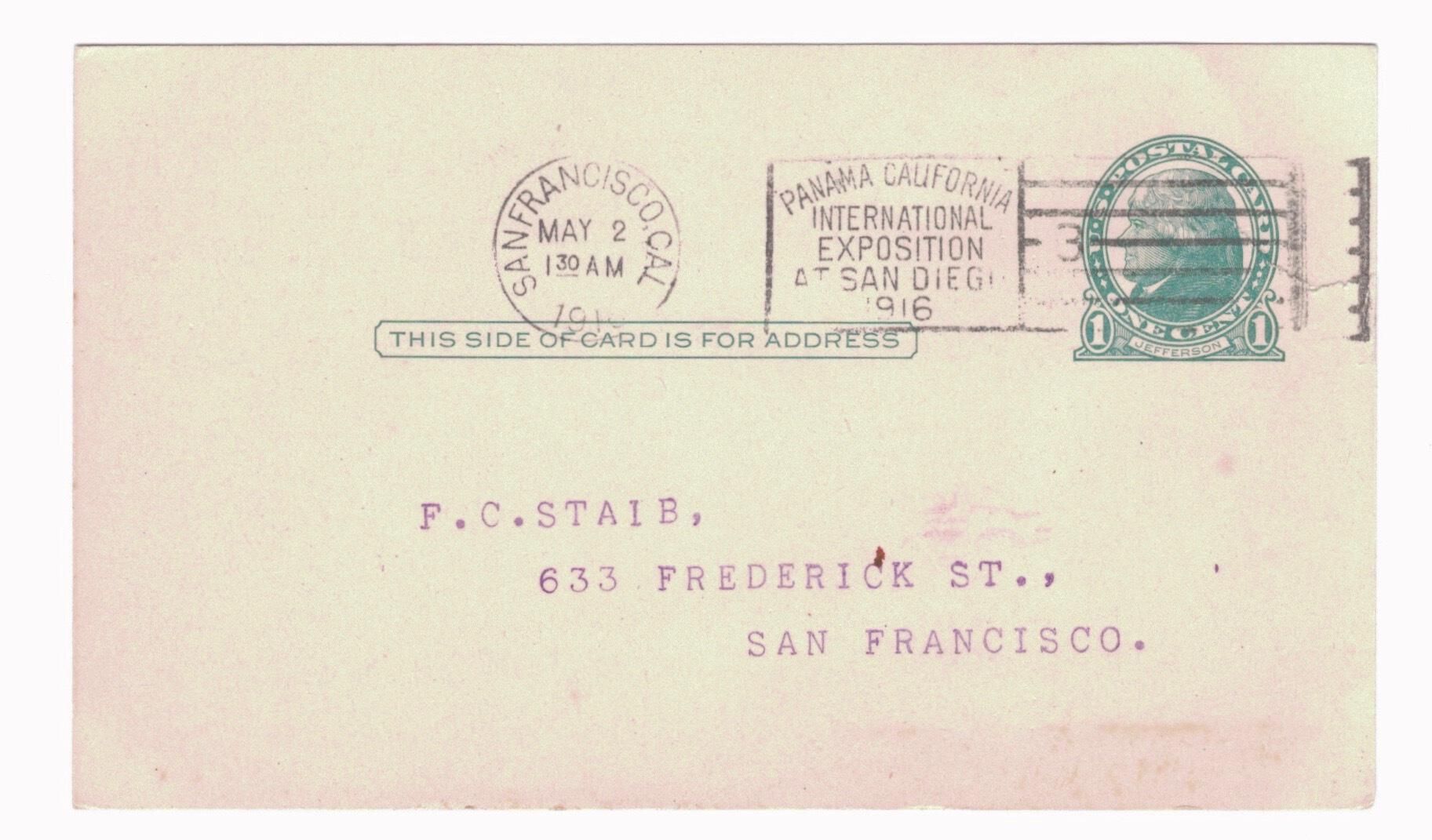 The 1 cent card is addressed to F.C. Staib.Archive Details